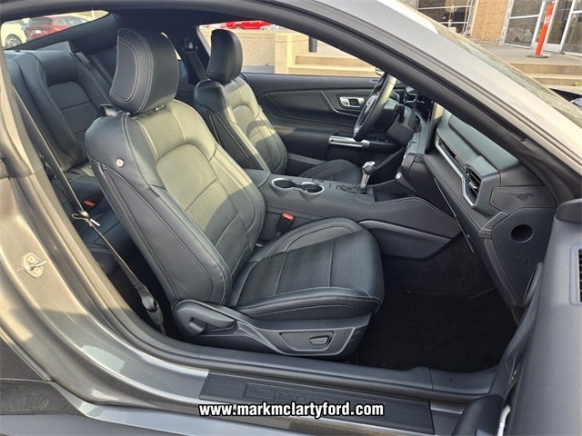 Mustang EcoBoost Premium, 2D Coupe, EcoBoost 2.3L I4 GTDi DOHC Turbocharged VCT, 10-Speed Automatic, RWD, Carbonized Gray Metallic, Black Onyx Leather, 1st Row Carpeted Black Floor Mats, 4-Wheel Disc Brakes, ABS brakes, Air Conditioning, Alloy wheels, AM/FM Stereo, Auto High-beam Headlights, Automatic temperature control, Brake assist, Bumpers: body-color, Compass, Delay-off headlights, Driver door bin, Driver vanity mirror, Dual front impact airbags, Dual front side impact airbags, Electronic Stability Control, Emergency communication system: 911 Assist, Exterior Parking Camera Rear, Four wheel independent suspension, Front anti-roll bar, Front Bucket Seats, Front Center Armrest, Front dual zone A/C, Front reading lights, Fully automatic headlights, HD Radio, Knee airbag, Leather Shift Knob, Low tire pressure warning, Occupant sensing airbag, Outside temperature display, Overhead airbag, Overhead console, Panic alarm, Passenger door bin, Passenger vanity mirror, Power door mirrors, Power steering, Power windows, Radio data system, Rain sensing wipers, Rear anti-roll bar, Rear Parking Sensors, Rear window defroster, Remote keyless entry, Speed control, Speed-sensing steering, Speed-Sensitive Wipers, Split folding rear seat, Sport steering wheel, Steering wheel mounted audio controls, SYNC 4, Tachometer, Telescoping steering wheel, Tilt steering wheel, Traction control, Trip computer, Variably intermittent wipers, Voltmeter.