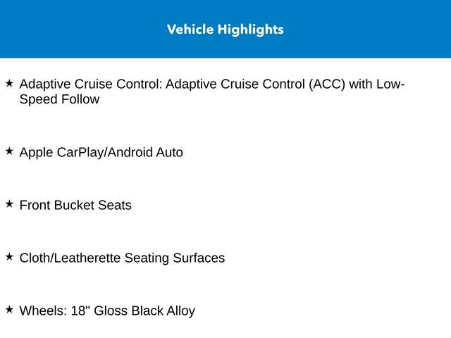 - Adaptive Cruise Control: Adaptive Cruise Control (ACC) with Low-Speed Follow