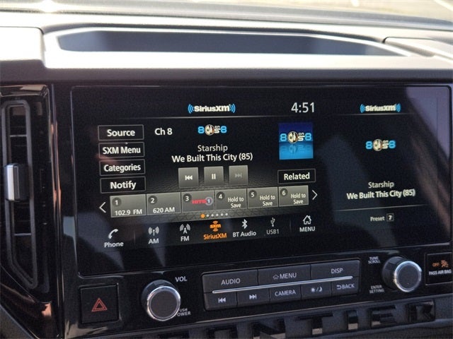 - Radio: SXM/AM/FM/AUX/USB Audio System -inc: 6 speakers, 12.3" color touch-screen display, wireless Apple CarPlay, wireless Android Auto, Bluetooth® hands-free phone system and streaming (audio or text message), voice recognition for audio features, Siri Eyes Free, NissanConnect services, Wi-Fi hotspot, 1 USB-A and 1 USB-C front ports and SiriusXM radio w/advanced audio features