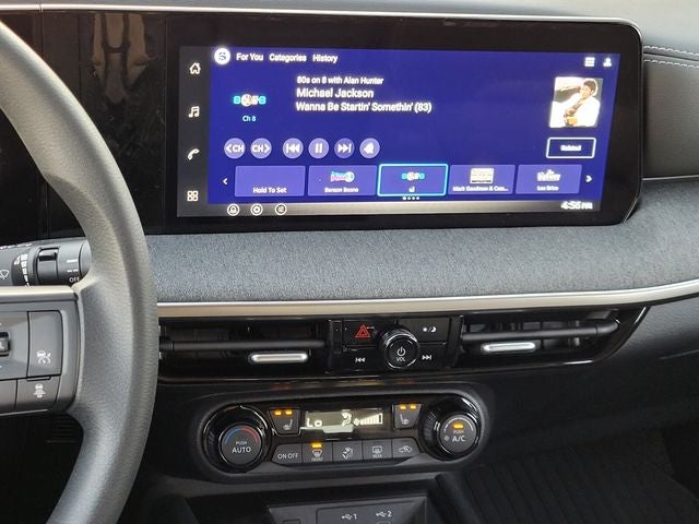 - Radio: AM/FM/SiriusXM Audio System -inc: 12.3" color touchscreen display w/4 speakers, Bluetooth® hands-free phone system, streaming audio via Bluetooth®, NissanConnect featuring wireless Apple CarPlay, wireless Android Auto, Siri eyes free and hands-free text messaging assistant, audio and Bluetooth® steering wheel switches