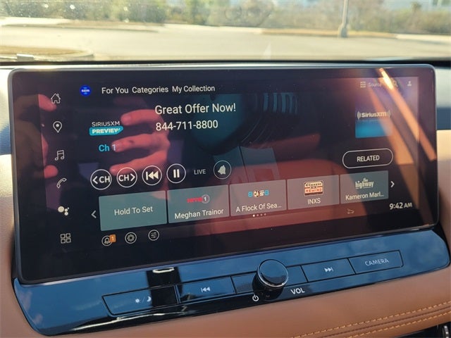 - Radio: AM/FM NissanConnect w/Navigation -inc: SiriusXM 360L, hybrid radio, enhanced voice recognition (one shot VDE, natural language understanding), Active Noise Cancellation, wireless Apple CarPlay, wireless Android Auto, 12.3" color HD display, Bluetooth®, 2 front USB type-C, Wi-Fi hotspot, Alexa Built-In, Google built-in: Google Assistant, Play Store, maps, data, NissanConnect Services powered by SiriusXM, SiriusXM Traffic and SiriusXM Travel Link