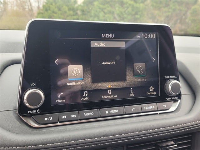 - Radio: AM/FM NissanConnect -inc: 6 speakers plus 2 tweeters, Apple CarPlay, Android Auto, 8" color touch screen display, Bluetooth®, 2 front USB type-C, Wi-Fi hotspot and NissanConnect Services powered by SiriusXM