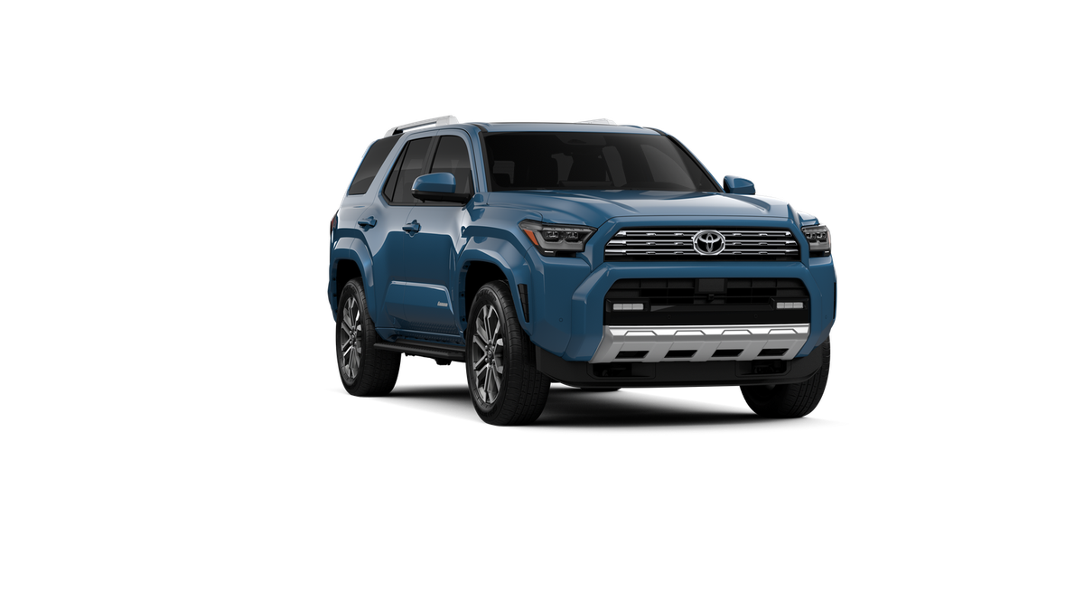 Blue 2026 Toyota 4Runner Limited 4WD 8-Speed Automatic 2.4L 4-Cylinder 15 Speakers, 4-Wheel Disc Brakes, ABS brakes, Air Conditioning, Alloy wheels, AM/FM radio: SiriusXM, Anti-whiplash front head restraints, Apple CarPlay/Android Auto, Auto High-beam Headlights, Auto-dimming Rear-View mirror, Automatic temperature control, Brake assist, Bumpers: body-color, Compass, Delay-off headlights, Driver door bin, Driver vanity mirror, Dual front impact airbags, Dual front side impact airbags, Electronic Stability Control, Emergency communication system: Safety Connect (1-year trial), Exterior Parking Camera Rear, Front anti-roll bar, Front Bucket Seats, Front Center Armrest, Front dual zone A/C, Front fog lights, Front reading lights, Front wheel independent suspension, Fully automatic headlights, Heated and Ventilated Front Bucket Seats, Heated door mirrors, Heated front seats, Heated steering wheel, Illuminated entry, Knee airbag, Leather Seat Trim, Leather Shift Knob, Leather steering wheel, Low tire pressure warning, Memory seat, Navigation System, Occupant sensing airbag, Outside temperature display, Overhead airbag, Overhead console, Panic alarm, Passenger door bin, Passenger vanity mirror, Power door mirrors, Power driver seat, Power moonroof, Power passenger seat, Power steering, Power windows, Radio: 14 Audio, Rear anti-roll bar, Rear seat center armrest, Rear side impact airbag, Rear window defroster, Rear window wiper, Remote keyless entry, Security system, Speed control, Speed-sensing steering, Split folding rear seat, Spoiler, Steering wheel mounted audio controls, Tachometer, Telescoping steering wheel, Tilt steering wheel, Traction control, Trip computer, Turn signal indicator mirrors, Variably intermittent wipers, Ventilated front seats, and Wheels: 20 Inch Gray Painted Alloy.
