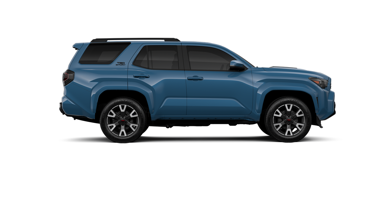 Blue 2026 Toyota 4Runner TRD Sport 4WD 8-Speed Automatic 2.4L 4-Cylinder 4-Wheel Disc Brakes, 8 Speakers, ABS brakes, Air Conditioning, Alloy wheels, AM/FM radio: SiriusXM, Anti-whiplash front head restraints, Apple CarPlay/Android Auto, Auto High-beam Headlights, Automatic temperature control, Brake assist, Bumpers: body-color, Driver door bin, Driver vanity mirror, Dual front impact airbags, Dual front side impact airbags, Electronic Stability Control, Emergency communication system: Safety Connect (1-year trial), Exterior Parking Camera Rear, Fabric Seat Trim, Front anti-roll bar, Front Bucket Seats, Front Center Armrest, Front dual zone A/C, Front fog lights, Front reading lights, Front wheel independent suspension, Heated door mirrors, Heated Front Bucket Seats, Heated front seats, Illuminated entry, Knee airbag, Leather Shift Knob, Leather steering wheel, Low tire pressure warning, Occupant sensing airbag, Outside temperature display, Overhead airbag, Overhead console, Panic alarm, Passenger door bin, Passenger vanity mirror, Power door mirrors, Power steering, Power windows, Radio: 8 Audio, Rear anti-roll bar, Rear seat center armrest, Rear side impact airbag, Rear window defroster, Rear window wiper, Remote keyless entry, Security system, Speed control, Speed-sensing steering, Split folding rear seat, Spoiler, Steering wheel mounted audio controls, Tachometer, Telescoping steering wheel, Tilt steering wheel, Traction control, Trip computer, Variably intermittent wipers, and Wheels: 20 Dark-Gray Painted Alloy.