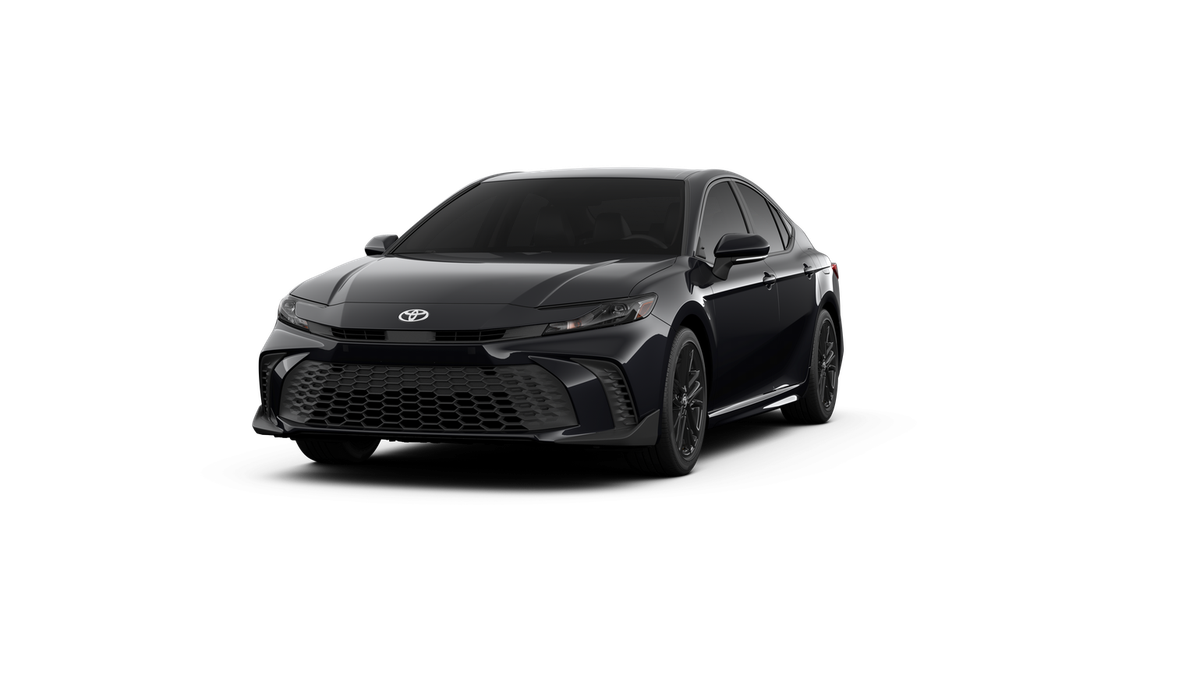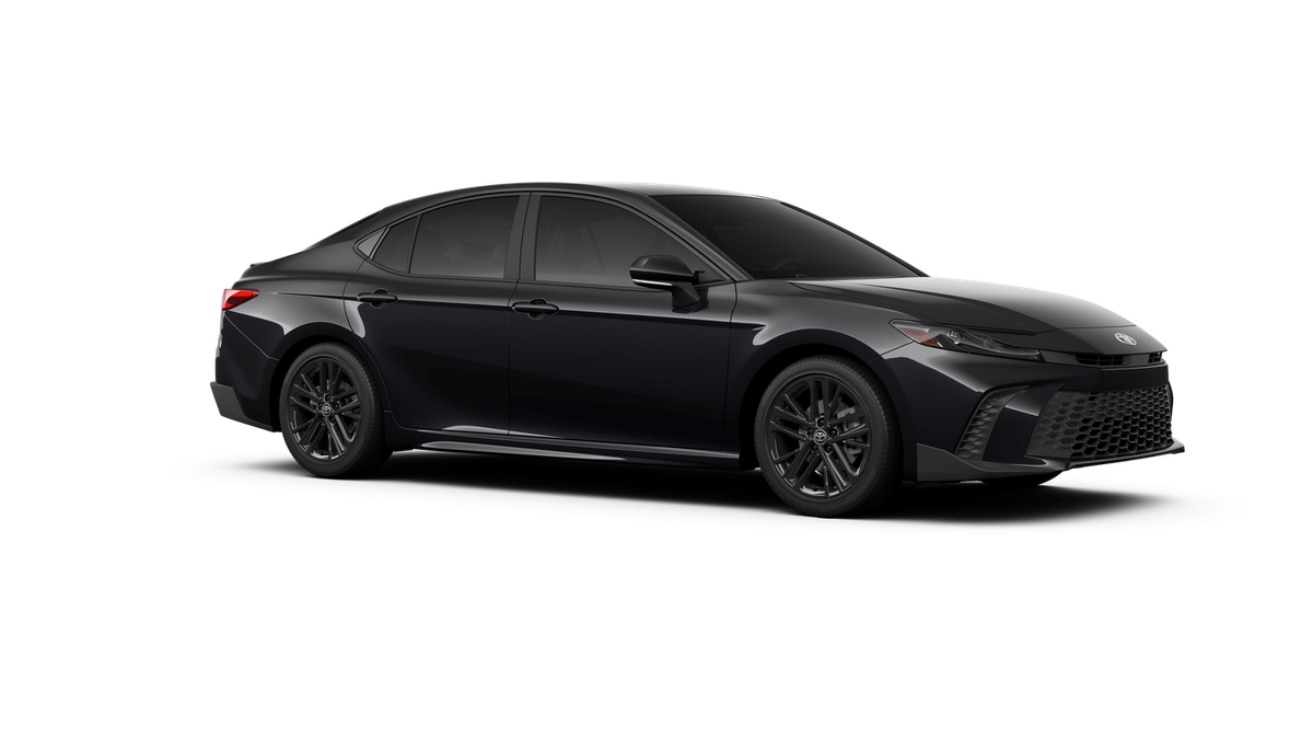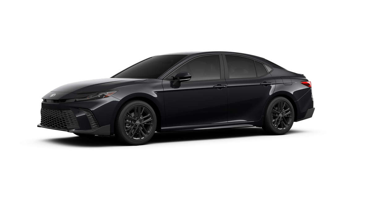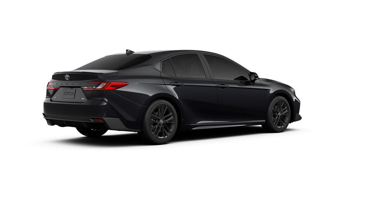 Midnight Black 2026 Toyota Camry SE FWD eCVT 2.5L 4-Cylinder 16V DOHC 4-Wheel Disc Brakes, 6 Speakers, ABS brakes, Air Conditioning, Alloy wheels, AM/FM radio: SiriusXM, Apple CarPlay/Android Auto, Auto High-beam Headlights, Automatic temperature control, Brake assist, Bumpers: body-color, Delay-off headlights, Driver door bin, Driver vanity mirror, Dual front impact airbags, Dual front side impact airbags, Electronic Stability Control, Emergency communication system: Safety Connect (5-year trial), Exterior Parking Camera Rear, Four wheel independent suspension, Front anti-roll bar, Front Bucket Seats, Front Center Armrest, Front dual zone A/C, Front reading lights, Front Seats, Fully automatic headlights, Heated door mirrors, Heated Front Seats, Illuminated entry, Knee airbag, Leather Shift Knob, Leather steering wheel, Low tire pressure warning, Occupant sensing airbag, Outside temperature display, Overhead airbag, Overhead console, Panic alarm, Passenger door bin, Passenger vanity mirror, Power door mirrors, Power driver seat, Power steering, Power windows, Radio data system, Radio: 12.3 Toyota Multimedia Audio, Radio: 8 Toyota Audio Multimedia, Rear anti-roll bar, Rear reading lights, Rear seat center armrest, Rear window defroster, Remote keyless entry, Security system, SofTex and Fabric Seat Trim, Speed control, Speed-sensing steering, Split folding rear seat, Spoiler, Steering wheel mounted audio controls, Telescoping steering wheel, Tilt steering wheel, Traction control, Trip computer, Turn signal indicator mirrors, Variably intermittent wipers, and Wheels: 18 Multi-Spoke Black-Finished Alloy.