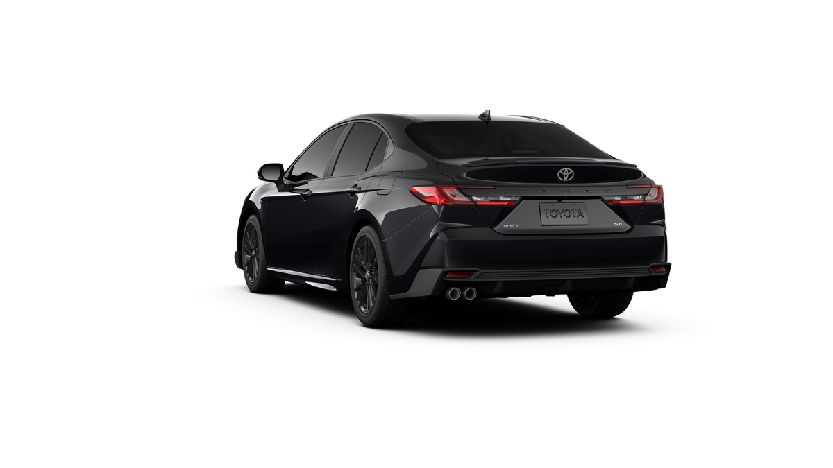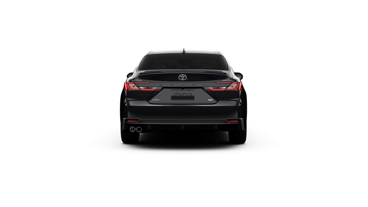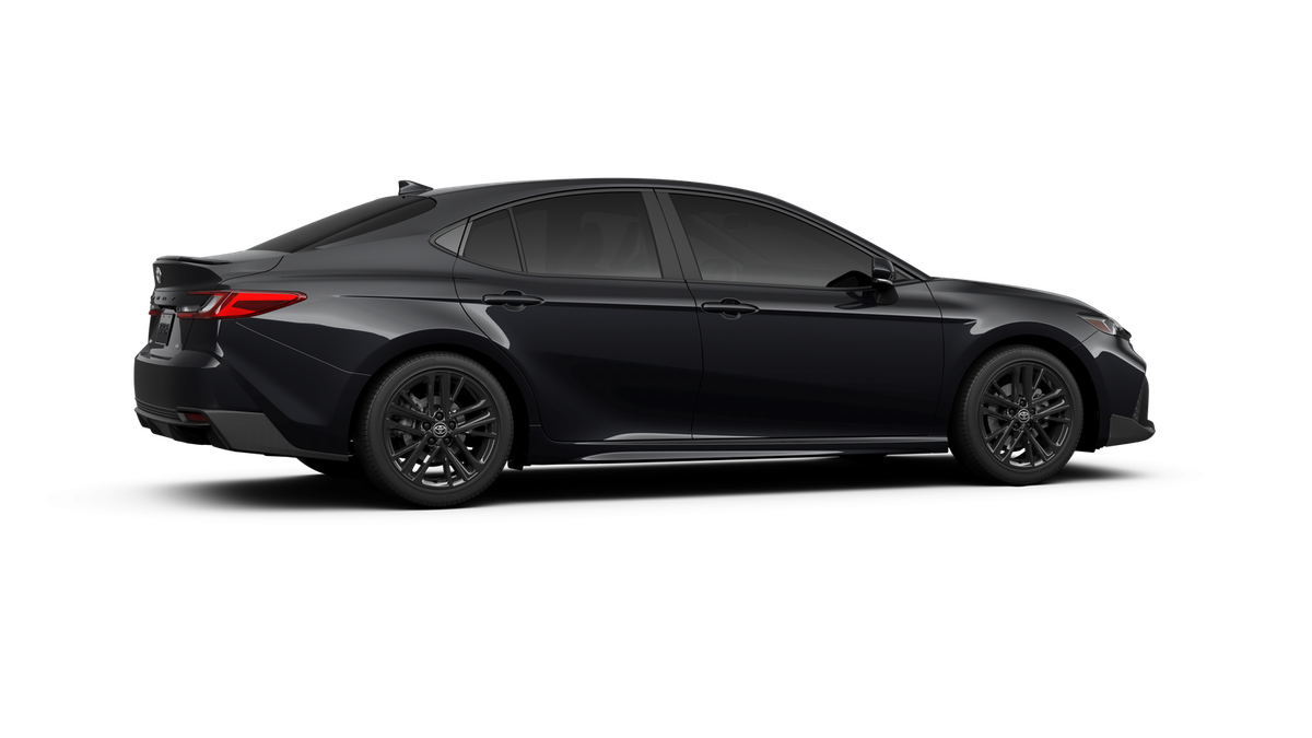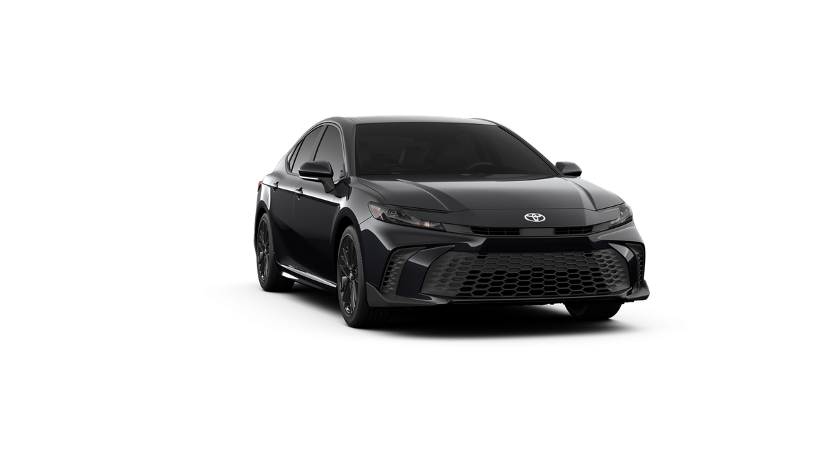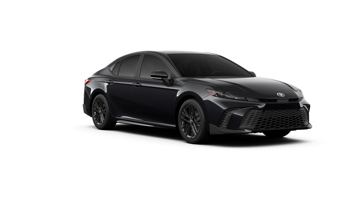 Midnight Black 2026 Toyota Camry SE FWD eCVT 2.5L 4-Cylinder 16V DOHC 4-Wheel Disc Brakes, 6 Speakers, ABS brakes, Air Conditioning, Alloy wheels, AM/FM radio: SiriusXM, Apple CarPlay/Android Auto, Auto High-beam Headlights, Automatic temperature control, Brake assist, Bumpers: body-color, Delay-off headlights, Driver door bin, Driver vanity mirror, Dual front impact airbags, Dual front side impact airbags, Electronic Stability Control, Emergency communication system: Safety Connect (5-year trial), Exterior Parking Camera Rear, Four wheel independent suspension, Front anti-roll bar, Front Bucket Seats, Front Center Armrest, Front dual zone A/C, Front reading lights, Front Seats, Fully automatic headlights, Heated door mirrors, Heated Front Seats, Illuminated entry, Knee airbag, Leather Shift Knob, Leather steering wheel, Low tire pressure warning, Occupant sensing airbag, Outside temperature display, Overhead airbag, Overhead console, Panic alarm, Passenger door bin, Passenger vanity mirror, Power door mirrors, Power driver seat, Power steering, Power windows, Radio data system, Radio: 12.3 Toyota Multimedia Audio, Radio: 8 Toyota Audio Multimedia, Rear anti-roll bar, Rear reading lights, Rear seat center armrest, Rear window defroster, Remote keyless entry, Security system, SofTex and Fabric Seat Trim, Speed control, Speed-sensing steering, Split folding rear seat, Spoiler, Steering wheel mounted audio controls, Telescoping steering wheel, Tilt steering wheel, Traction control, Trip computer, Turn signal indicator mirrors, Variably intermittent wipers, and Wheels: 18 Multi-Spoke Black-Finished Alloy.