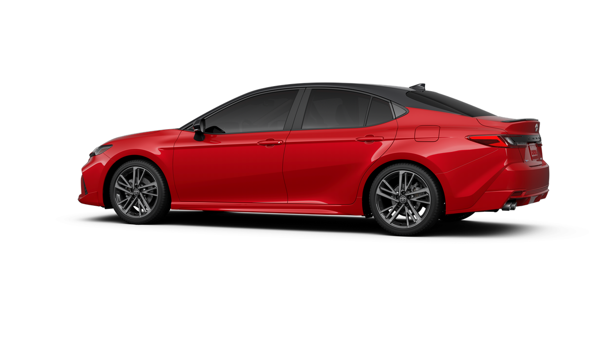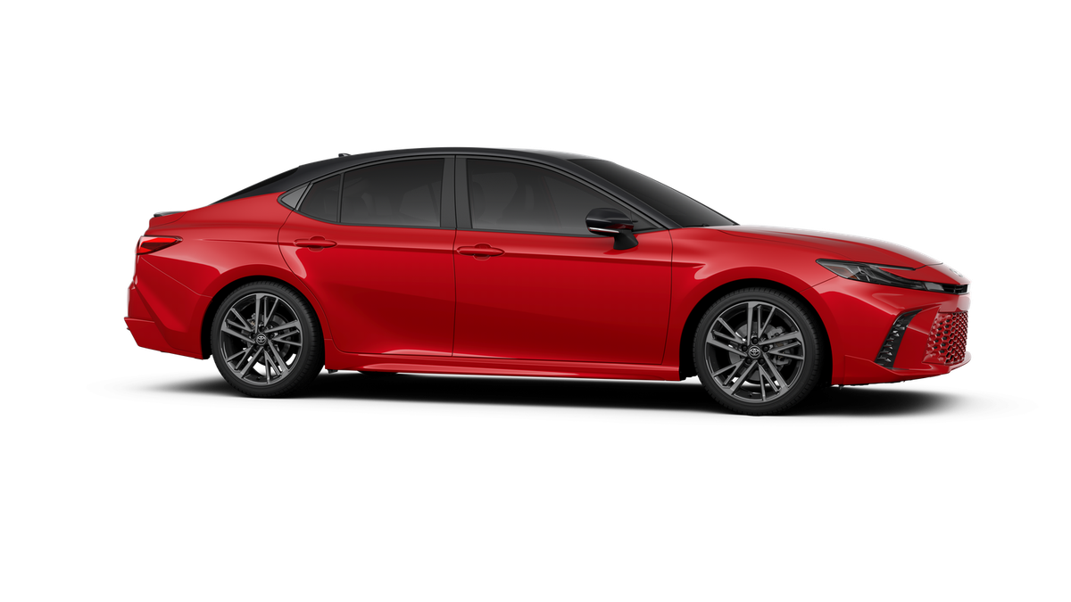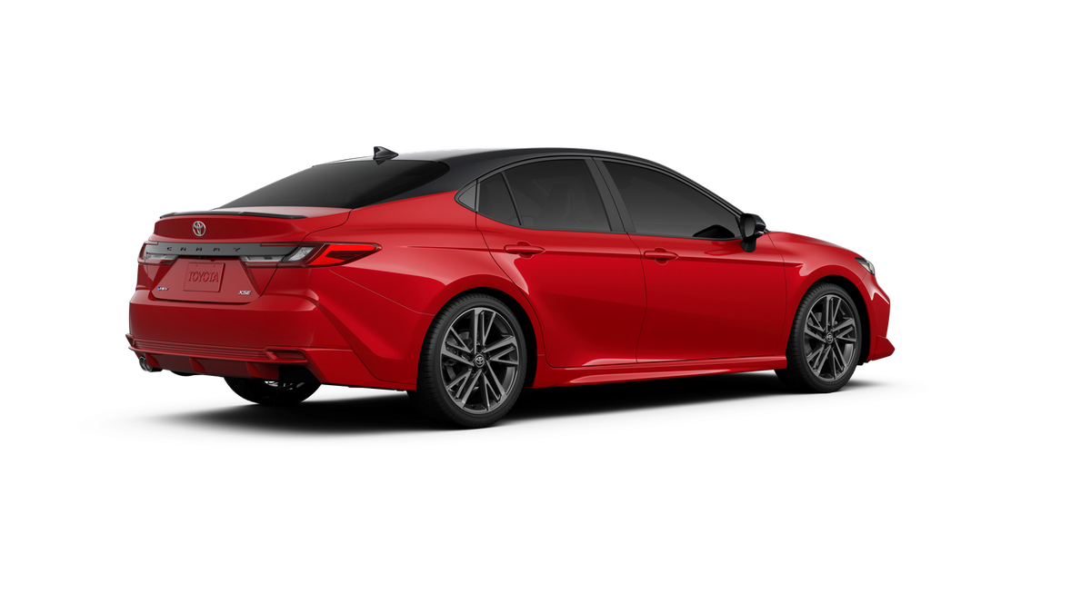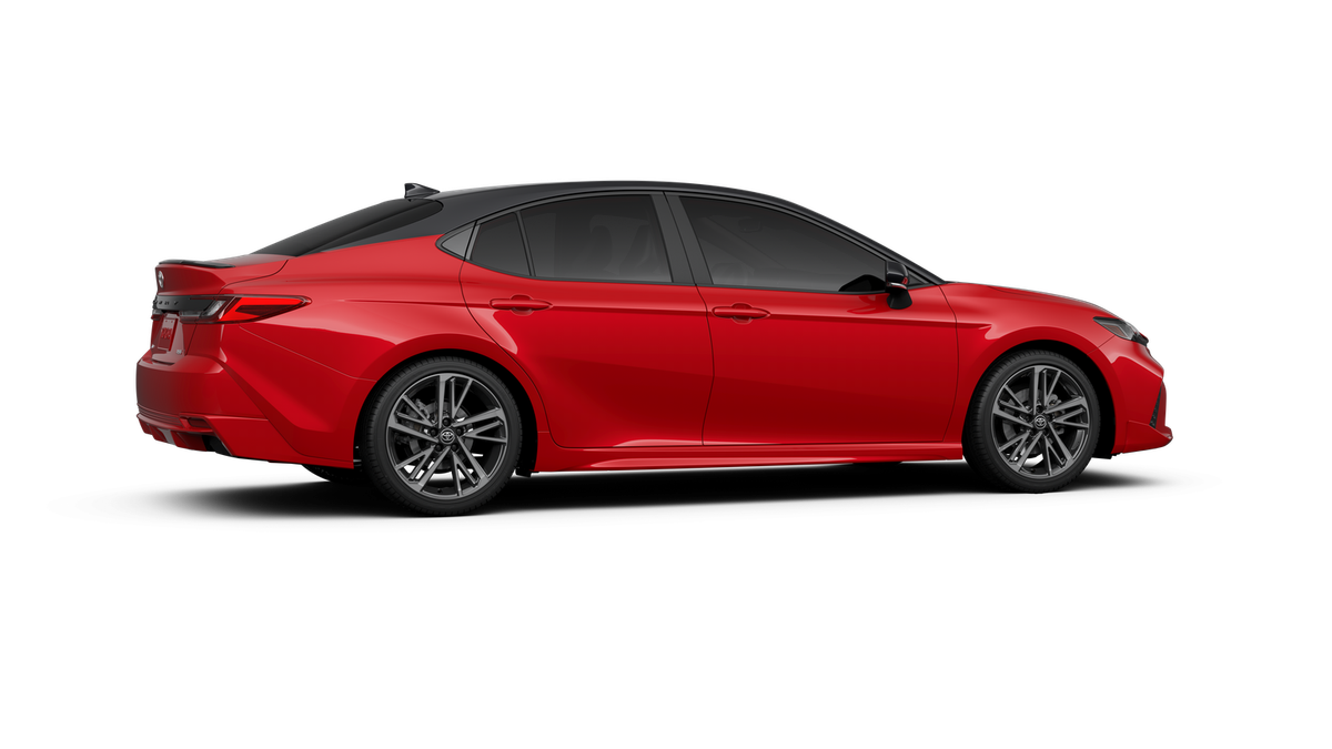 Red 2026 Toyota Camry XSE FWD eCVT 2.5L 4-Cylinder 16V DOHC 4-Wheel Disc Brakes, 6 Speakers, ABS brakes, Air Conditioning, Alloy wheels, AM/FM radio: SiriusXM, Apple CarPlay/Android Auto, Auto High-beam Headlights, Auto-dimming Rear-View mirror, Automatic temperature control, Brake assist, Bumpers: body-color, Delay-off headlights, Driver door bin, Driver vanity mirror, Dual front impact airbags, Dual front side impact airbags, Electronic Stability Control, Emergency communication system: Safety Connect (5-year trial), Exterior Parking Camera Rear, Four wheel independent suspension, Front anti-roll bar, Front Bucket Seats, Front Center Armrest, Front dual zone A/C, Front reading lights, Fully automatic headlights, Garage door transmitter: HomeLink, Heated door mirrors, Heated Front Seats, Heated front seats, Heated steering wheel, Illuminated entry, Knee airbag, Leather Seat Trim, Leather Shift Knob, Leather steering wheel, Low tire pressure warning, Navigation system: Drive Connect (1 year trial) includes Cloud Navigation with real time traffic and Google POI, Occupant sensing airbag, Outside temperature display, Overhead airbag, Overhead console, Panic alarm, Passenger door bin, Passenger vanity mirror, Power door mirrors, Power driver seat, Power passenger seat, Power steering, Power windows, Radio data system, Radio: 12.3 Toyota Multimedia Audio, Rear anti-roll bar, Rear reading lights, Rear seat center armrest, Rear window defroster, Remote keyless entry, Security system, Speed control, Speed-sensing steering, Split folding rear seat, Spoiler, Steering wheel mounted audio controls, Telescoping steering wheel, Tilt steering wheel, Traction control, Trip computer, Turn signal indicator mirrors, Variably intermittent wipers, and Wheels: 19 Smoked Gray and Black-Finished Alloy.