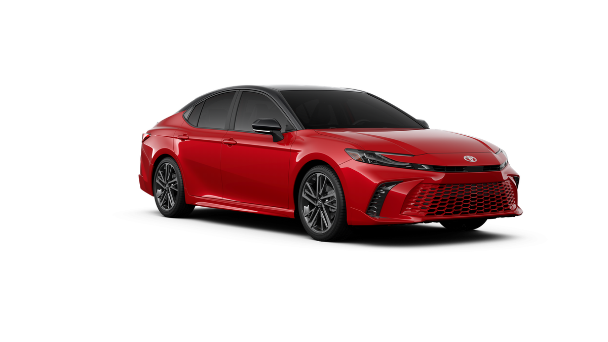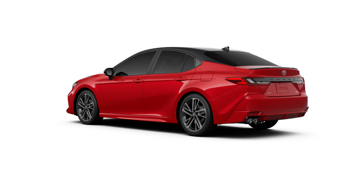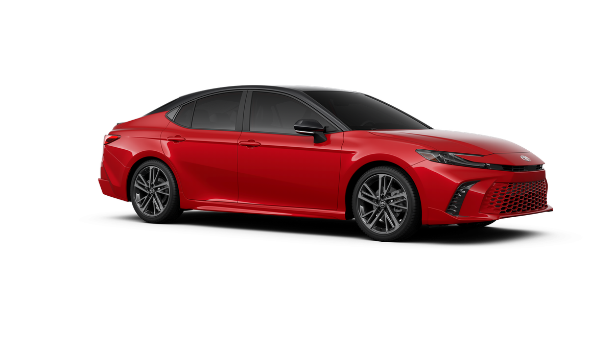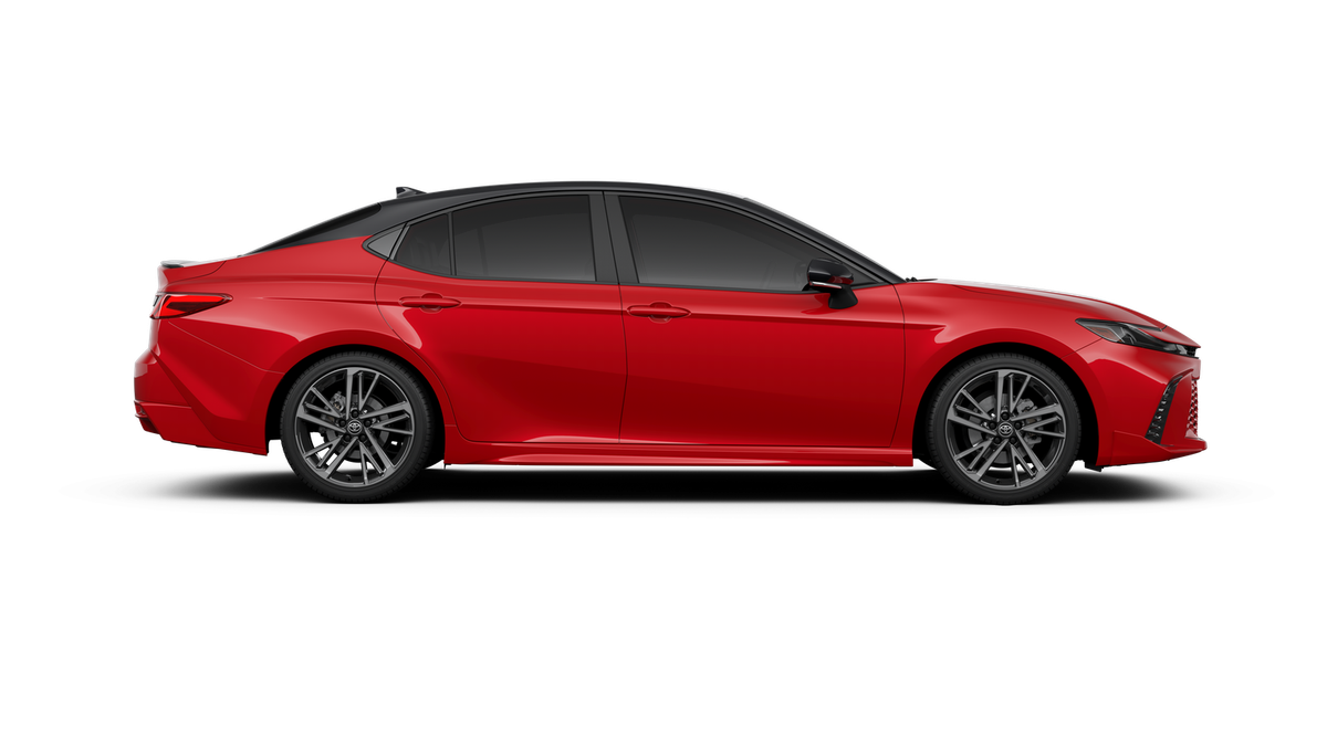 Red 2026 Toyota Camry XSE FWD eCVT 2.5L 4-Cylinder 16V DOHC 4-Wheel Disc Brakes, 6 Speakers, ABS brakes, Air Conditioning, Alloy wheels, AM/FM radio: SiriusXM, Apple CarPlay/Android Auto, Auto High-beam Headlights, Auto-dimming Rear-View mirror, Automatic temperature control, Brake assist, Bumpers: body-color, Delay-off headlights, Driver door bin, Driver vanity mirror, Dual front impact airbags, Dual front side impact airbags, Electronic Stability Control, Emergency communication system: Safety Connect (5-year trial), Exterior Parking Camera Rear, Four wheel independent suspension, Front anti-roll bar, Front Bucket Seats, Front Center Armrest, Front dual zone A/C, Front reading lights, Fully automatic headlights, Garage door transmitter: HomeLink, Heated door mirrors, Heated Front Seats, Heated front seats, Heated steering wheel, Illuminated entry, Knee airbag, Leather Seat Trim, Leather Shift Knob, Leather steering wheel, Low tire pressure warning, Navigation system: Drive Connect (1 year trial) includes Cloud Navigation with real time traffic and Google POI, Occupant sensing airbag, Outside temperature display, Overhead airbag, Overhead console, Panic alarm, Passenger door bin, Passenger vanity mirror, Power door mirrors, Power driver seat, Power passenger seat, Power steering, Power windows, Radio data system, Radio: 12.3 Toyota Multimedia Audio, Rear anti-roll bar, Rear reading lights, Rear seat center armrest, Rear window defroster, Remote keyless entry, Security system, Speed control, Speed-sensing steering, Split folding rear seat, Spoiler, Steering wheel mounted audio controls, Telescoping steering wheel, Tilt steering wheel, Traction control, Trip computer, Turn signal indicator mirrors, Variably intermittent wipers, and Wheels: 19 Smoked Gray and Black-Finished Alloy.