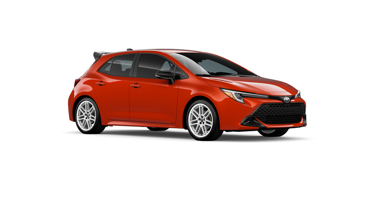 Inferno Red 2026 Toyota Corolla Hatchback SE FWD CVT 2.0L I4 16 Alloy Wheels, 4-Wheel Disc Brakes, 6 Speakers, ABS brakes, Air Conditioning, Alloy wheels, AM/FM radio: SiriusXM, Auto High-beam Headlights, Automatic temperature control, Brake assist, Bumpers: body-color, Compass, Delay-off headlights, Driver door bin, Driver vanity mirror, Dual front impact airbags, Dual front side impact airbags, Electronic Stability Control, Emergency communication system: Safety Connect (up to 10-year trial subscription), Exterior Parking Camera Rear, Fabric Seat Trim, Four wheel independent suspension, Front anti-roll bar, Front Bucket Seats, Front Center Armrest, Front reading lights, Heated door mirrors, Illuminated entry, Knee airbag, Leather Shift Knob, Leather steering wheel, Low tire pressure warning, Occupant sensing airbag, Outside temperature display, Overhead airbag, Overhead console, Panic alarm, Passenger door bin, Passenger vanity mirror, Power door mirrors, Power steering, Power windows, Radio data system, Radio: 8 Toyota Audio Multimedia, Rear anti-roll bar, Rear seat center armrest, Rear side impact airbag, Rear window defroster, Rear window wiper, Remote keyless entry, Security system, Speed control, Speed-sensing steering, Split folding rear seat, Spoiler, Sport Front Seats, Steering wheel mounted audio controls, Tachometer, Telescoping steering wheel, Tilt steering wheel, Traction control, Trip computer, Turn signal indicator mirrors, and Variably intermittent wipers.