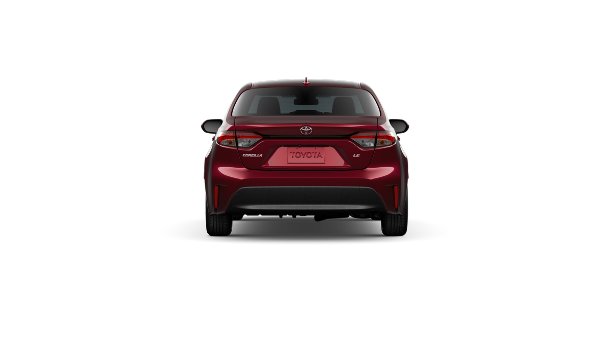 Ruby 2026 Toyota Corolla LE FWD CVT 2.0L I4 PDI DOHC 16V LEV3-SULEV30 169hp 4-Wheel Disc Brakes, 6 Speakers, ABS brakes, Air Conditioning, AM/FM radio: SiriusXM, Apple CarPlay/Android Auto, Auto High-beam Headlights, Automatic temperature control, Brake assist, Bumpers: body-color, Delay-off headlights, Driver door bin, Driver vanity mirror, Dual front impact airbags, Dual front side impact airbags, Electronic Stability Control, Emergency communication system: Safety Connect (up to 10-year trial subscription), Exterior Parking Camera Rear, Fabric Seat Trim, Front anti-roll bar, Front Bucket Seats, Front Center Armrest, Front reading lights, Front wheel independent suspension, Fully automatic headlights, Heated door mirrors, Illuminated entry, Knee airbag, Low tire pressure warning, Occupant sensing airbag, Outside temperature display, Overhead airbag, Panic alarm, Passenger door bin, Passenger vanity mirror, Power door mirrors, Power steering, Power windows, Radio data system, Radio: 8 Toyota Audio Multimedia, Rear anti-roll bar, Rear seat center armrest, Rear side impact airbag, Rear window defroster, Remote keyless entry, Speed control, Split folding rear seat, Steering wheel mounted audio controls, Tachometer, Telescoping steering wheel, Tilt steering wheel, Traction control, Trip computer, and Wheels: 16 Steel with Covers.