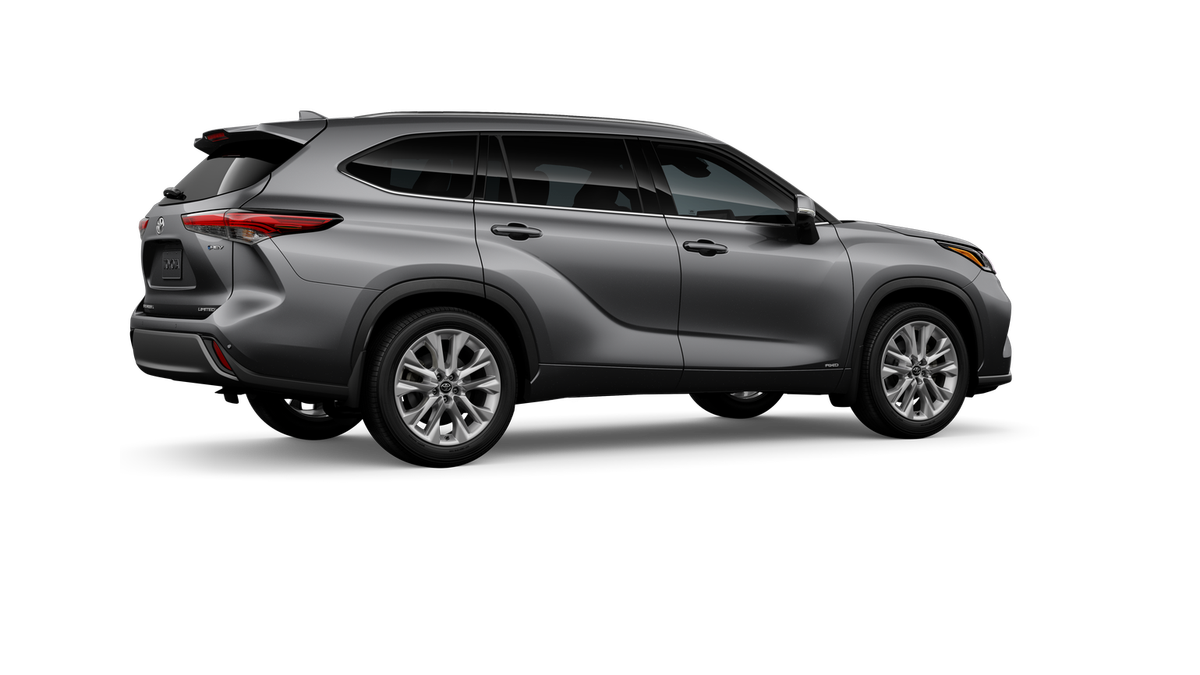 Heavy Metal 2026 Toyota Highlander Hybrid Limited AWD CVT 2.5L I4 PDI Hybrid DOHC 16V LEV3-SULEV30 11 Speakers, 3rd row seats: split-bench, 4-Wheel Disc Brakes, ABS brakes, Air Conditioning, Alloy wheels, AM/FM radio: SiriusXM, Apple CarPlay/Android Auto, Auto High-beam Headlights, Auto-dimming Rear-View mirror, Automatic temperature control, Brake assist, Bumpers: body-color, Chrome wheels, Delay-off headlights, Driver door bin, Driver vanity mirror, Dual front impact airbags, Dual front side impact airbags, Electronic Stability Control, Emergency communication system: Safety Connect (up to 10-year trial subscription), Exterior Parking Camera Rear, Four wheel independent suspension, Front anti-roll bar, Front Bucket Seats, Front Center Armrest, Front dual zone A/C, Front fog lights, Front reading lights, Fully automatic headlights, Garage door transmitter: HomeLink, Heated and Ventilated Front Bucket Seats, Heated door mirrors, Heated front seats, Heated steering wheel, Illuminated entry, Knee airbag, Leather Seat Trim, Leather Shift Knob, Leather steering wheel, Low tire pressure warning, Memory seat, Navigation system: Drive Connect Cloud Navigation (1-year trial subscription), Occupant sensing airbag, Outside temperature display, Overhead airbag, Overhead console, Panic alarm, Passenger door bin, Passenger vanity mirror, Power door mirrors, Power driver seat, Power Liftgate, Power moonroof, Power passenger seat, Power steering, Power windows, Radio: 12.3 Toyota Audio Multimedia with JBL Premium Audio, Rear air conditioning, Rear anti-roll bar, Rear reading lights, Rear window defroster, Rear window wiper, Reclining 3rd row seat, Remote keyless entry, Security system, Speed control, Speed-sensing steering, Split folding rear seat, Spoiler, Steering wheel mounted audio controls, Telescoping steering wheel, Tilt steering wheel, Traction control, Trip computer, Turn signal indicator mirrors, Variably intermittent wipers, Ventilated front seats, and Wheels: 20 Chrome-Finished Alloy.