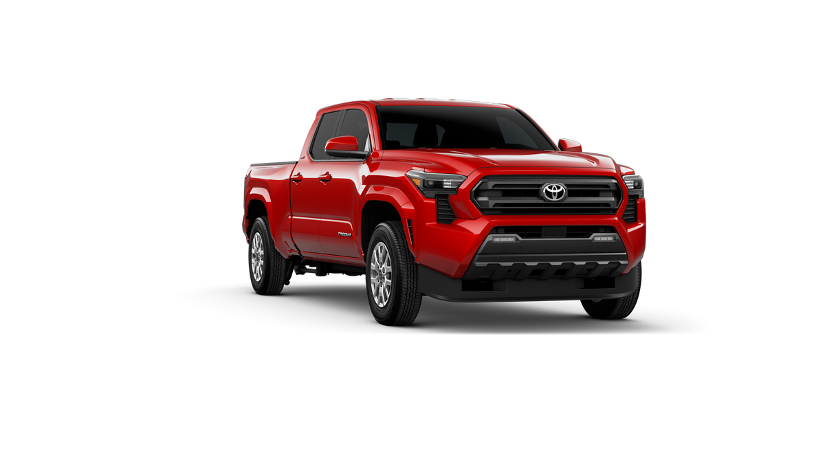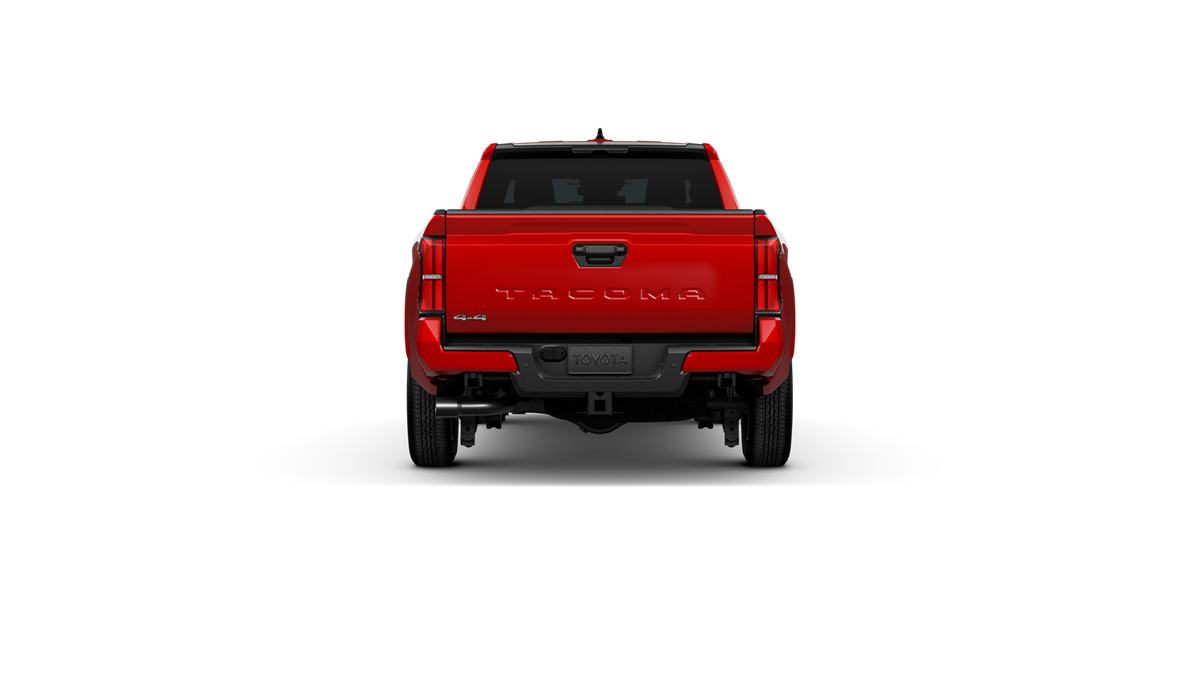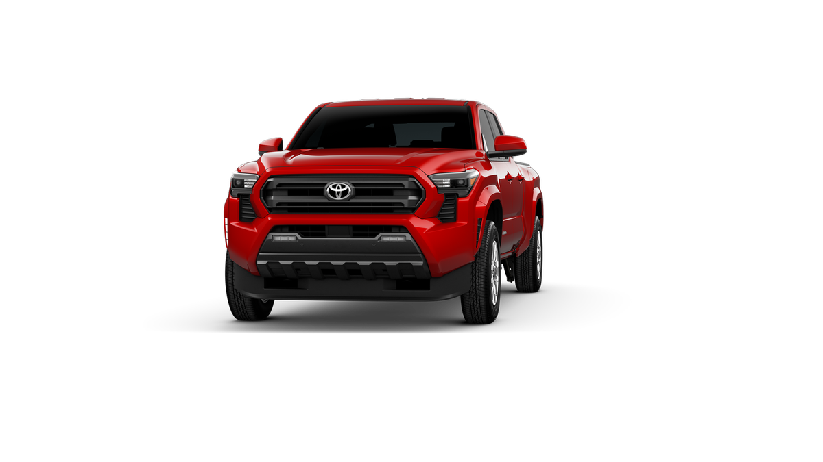 Red 2026 Toyota Tacoma SR5 4WD 8-Speed Automatic 2.4L 4-Cylinder 3.583 Axle Ratio, 4-Wheel Disc Brakes, 6 Speakers, ABS brakes, Air Conditioning, Alloy wheels, AM/FM radio: SiriusXM, Anti-whiplash front head restraints, Apple CarPlay/Android Auto, Auto High-beam Headlights, Auto-dimming Rear-View mirror, Brake assist, Bumpers: body-color, Driver door bin, Dual front impact airbags, Dual front side impact airbags, Electronic Stability Control, Emergency communication system: Safety Connect (up to 10-year trial subscription), Exterior Parking Camera Rear, Fabric Seat Trim, Four wheel independent suspension, Front anti-roll bar, Front Bucket Seats, Front Center Armrest, Front fog lights, Front reading lights, Fully automatic headlights, Heated door mirrors, Illuminated entry, JBL Premium Audio, Knee airbag, Low tire pressure warning, Occupant sensing airbag, Outside temperature display, Overhead airbag, Overhead console, Panic alarm, Passenger door bin, Power door mirrors, Power steering, Power windows, Radio: 8 Toyota Audio Multimedia, Rear step bumper, Rear window defroster, Remote keyless entry, Speed control, Speed-sensing steering, Split folding rear seat, Steering wheel mounted audio controls, Tachometer, Telescoping steering wheel, Tilt steering wheel, Traction control, Trip computer, Variably intermittent wipers, and Wheels: 17 Styled Alloy.