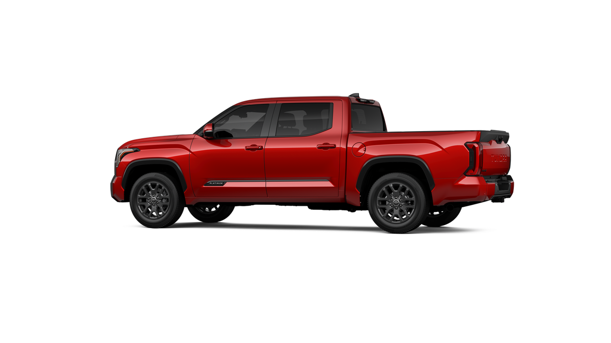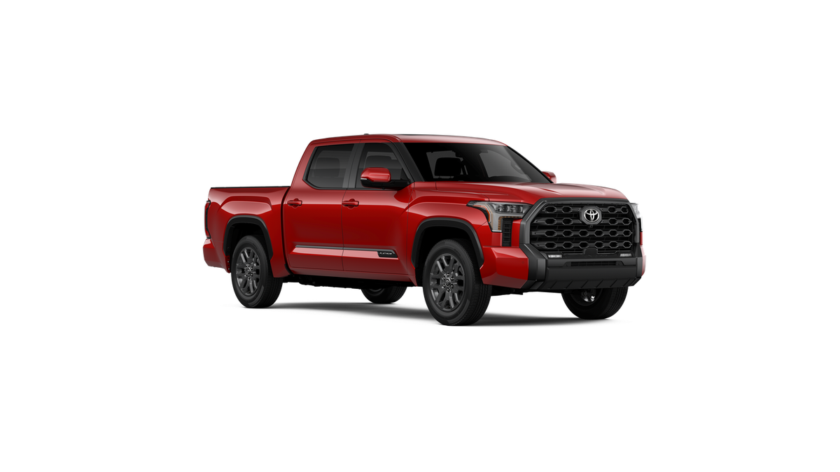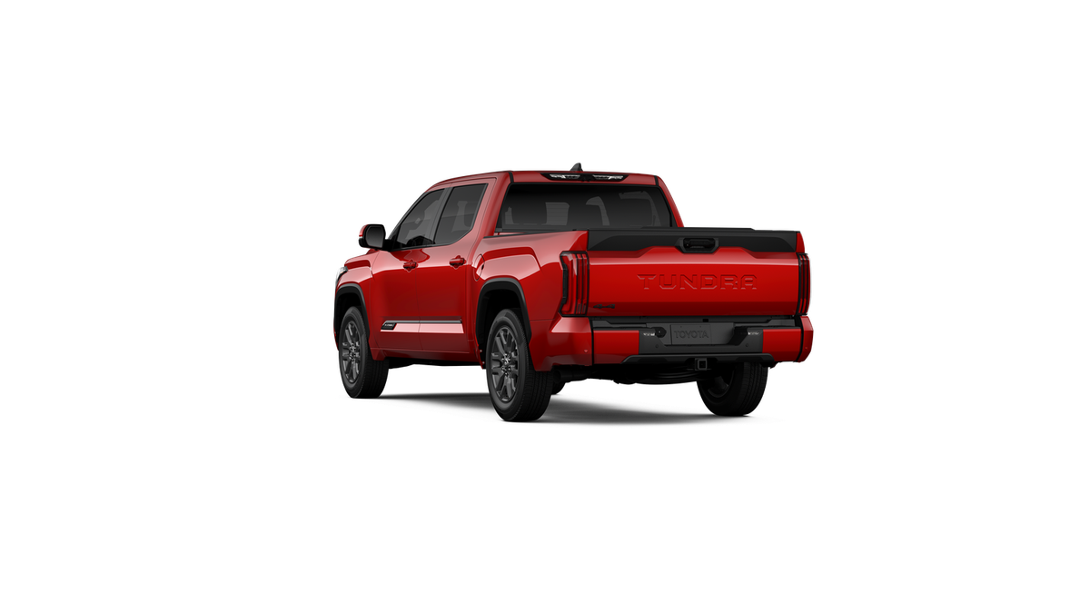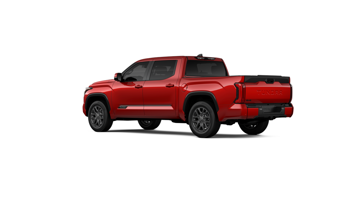 Red 2026 Toyota Tundra Platinum 4WD 10-Speed Automatic 3.4L V6 10-Way Power Adjustable Heated and Ventilated Front Seats, 12 Speakers, 3.31 Axle Ratio, 4-Wheel Disc Brakes, ABS brakes, Air Conditioning, Alloy wheels, AM/FM radio: SiriusXM, Apple CarPlay/Android Auto, Auto High-beam Headlights, Auto-dimming door mirrors, Auto-dimming Rear-View mirror, Automatic temperature control, Brake assist, Bumpers: body-color, Compass, Delay-off headlights, Driver door bin, Driver vanity mirror, Dual front impact airbags, Dual front side impact airbags, Electronic Stability Control, Emergency communication system: Safety Connect (up to 10-year trial subscription), Exterior Parking Camera Rear, Front anti-roll bar, Front Bucket Seats, Front Center Armrest, Front dual zone A/C, Front fog lights, Front reading lights, Front wheel independent suspension, Fully automatic headlights, Garage door transmitter: HomeLink, Heated door mirrors, Heated front seats, Heated rear seats, Heated steering wheel, Illuminated entry, Knee airbag, Leather Shift Knob, Leather steering wheel, Low tire pressure warning, Memory seat, Navigation system: Drive Connect Cloud Navigation (1-year trial subscription), Occupant sensing airbag, Outside temperature display, Overhead airbag, Overhead console, Panic alarm, Passenger door bin, Passenger vanity mirror, Power door mirrors, Power driver seat, Power moonroof, Power passenger seat, Power steering, Power windows, Premium Leather Seat Trim, Radio data system, Radio: Premium Audio, Rain sensing wipers, Rear reading lights, Rear seat center armrest, Rear step bumper, Rear window defroster, Remote keyless entry, Safety Connect, Security system, Speed control, Speed-sensing steering, Speed-Sensitive Wipers, Split folding rear seat, Steering wheel memory, Steering wheel mounted audio controls, Tachometer, Telescoping steering wheel, Tilt steering wheel, Traction control, Trip computer, Turn signal indicator mirrors, Variably intermittent wipers, Ventilated front seats, Ventilated rear seats, Voltmeter, and Wheels: 20 Dark Painted Alloy.