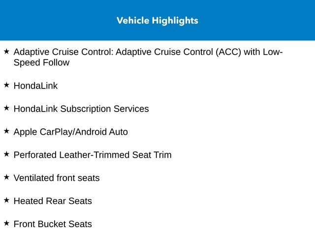 Boasting a sleek and commanding exterior, the Pilot Black Edition commands attention on the road. Its bold black accents, including the 20-inch gloss black wheels with black lug nuts, create a striking and sophisticated look. Step inside, and you'll be greeted by a luxurious cabin that exudes refinement. Perforated leather-trimmed seats, heated and ventilated front seats, and a power moonroof contribute to an exceptional level of comfort and convenience.