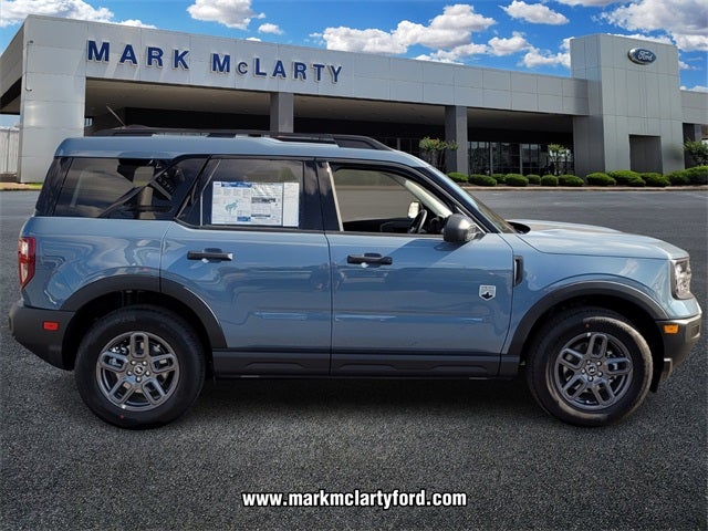 Bronco Sport Big Bend, 4D Sport Utility, 1.5L EcoBoost, 8-Speed Automatic, 4WD, Azure Gray Metallic Tri-Coat, Medium Lt Smoked Truffle Cloth, 4-Wheel Disc Brakes, 6 Speakers, ABS brakes, Air Conditioning, Alloy wheels, AM/FM radio: SiriusXM, AM/FM Stereo, Auto High-beam Headlights, Automatic temperature control, Brake assist, Cloth w/Easy-to-Clean Front Bucket Seats, Compass, Convenience Package, Delay-off headlights, Driver door bin, Driver vanity mirror, Dual front impact airbags, Dual front side impact airbags, Electronic Stability Control, Emergency communication system: SYNC 4 911 Assist, Equipment Group 200A, Four wheel independent suspension, Front anti-roll bar, Front Bucket Seats, Front Center Armrest, Front Driver/Passenger Seat Back Map Pockets, Front License Plate Bracket, Front reading lights, Fully automatic headlights, Heated 8-Way Power Driver's Seat, Heated door mirrors, Illuminated entry, Knee airbag, LED Fog Lamps, Low tire pressure warning, Occupant sensing airbag, Outside temperature display, Overhead airbag, Overhead console, Panic alarm, Passenger door bin, Passenger vanity mirror, Power door mirrors, Power steering, Power windows, Premium Wrapped Steering Wheel, Radio data system, Rear anti-roll bar, Rear Parking Sensors, Rear reading lights, Rear seat center armrest, Rear window defroster, Rear window wiper, Remote keyless entry, Security system, SiriusXM, Speed control, Speed-sensing steering, Speed-Sensitive Wipers, Split folding rear seat, Steering wheel mounted audio controls, SYNC 4 w/Enhanced Voice Recognition, Tachometer, Telescoping steering wheel, Tilt steering wheel, Traction control, Trip computer, Universal Garage Door Opener (UGDO), Variably intermittent wipers, Wheels: 17 Carbonized Gray-Painted Aluminum.