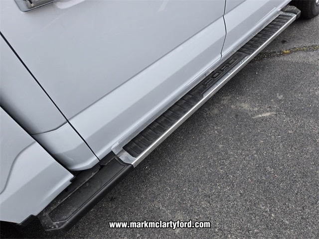 F-150 Lariat, 4D SuperCrew, 3.5L PowerBoost Full-Hybrid V6, 10-Speed Automatic, 4WD, Space White Metallic, Black/Smoked Truffle Premium Synthetic, 2nd Row Heated Seats, 4 Pickup Box Tie-Down Plates, 4-Wheel Disc Brakes, 4x4 FX4 Off-Road Bodyside Decal, 6 Extended Running Boards, 8 Speakers, ABS brakes, ActiveX Trimmed Bucket Seats, ActiveX Trimmed Smoked Truffle Bucket Seats, Adjustable pedals, Air Conditioning, Alloy wheels, AM/FM radio: SiriusXM with 360L, Ambient Lighting - Ice Blue Color Only, Auto High-beam Headlights, Auto-dimming door mirrors, Auto-dimming Rear-View mirror, Automatic temperature control, Bed Utility Package, Brake assist, Bumpers: chrome, Chrome wheels, Compass, Console Worksurface, Delay-off headlights, Driver door bin, Driver vanity mirror, Dual front impact airbags, Dual front side impact airbags, Electronic Stability Control, Emergency communication system: SYNC 4 911 Assist, Equipment Group 502A High, Front anti-roll bar, Front Bucket Seats, Front Center Armrest, Front dual zone A/C, Front fog lights, Front License Plate Bracket, Front reading lights, Front wheel independent suspension, Fully automatic headlights, FX4 Off-Road Package, Garage door transmitter, Heads-Up Display, Heated door mirrors, Heated front seats, Heated steering wheel, Hill Descent Control, Illuminated Driver & Passenger Visors, Illuminated entry, Integrated Trailer Brake Controller, LED Box Lighting, Low tire pressure warning, Memory seat, Mobile Office Package, Monotube Rear Shocks, Navigation system: Connected Navigation, Occupant sensing airbag, Off-Road Tuned Front Shock Absorbers, Outside temperature display, Overhead airbag, Overhead console, Panic alarm, Partitioned Lockable Rear Storage, Passenger door bin, Passenger vanity mirror, Pedal memory, Power door mirrors, Power driver seat, Power passenger seat, Power steering, Power Tailgate, Power windows, Power-Sliding Rear Window, Pro Access Tailgate, Pro Power Onboard - 7.2KW, Radio data system, Radio: B&O Sound System by Bang & Olufsen, Radio: B&O Unleashed Sound System by Bang & Olufsen, Rain sensing wipers, Rear reading lights, Rear seat center armrest, Rear step bumper, Rear window defroster, Remote keyless entry, Rock Crawl Mode, Security system, Speed control, Split folding rear seat, Steering wheel mounted audio controls, SYNC 4 w/Enhanced Voice Recognition, Tachometer, Telescoping steering wheel, Tilt steering wheel, Tough Bed Spray-In Bedliner, Tow/Haul Package, Traction control, Tray Style Floor Liner w/o Carpet Mats, Trip computer, Turn signal indicator mirrors, Twin Panel Moonroof, Variably intermittent wipers, Ventilated front seats, Voltmeter, Wheels: 18 Chrome-Like PVD, Wheels: 20 Chrome-Like PVD, Wireless Charging.