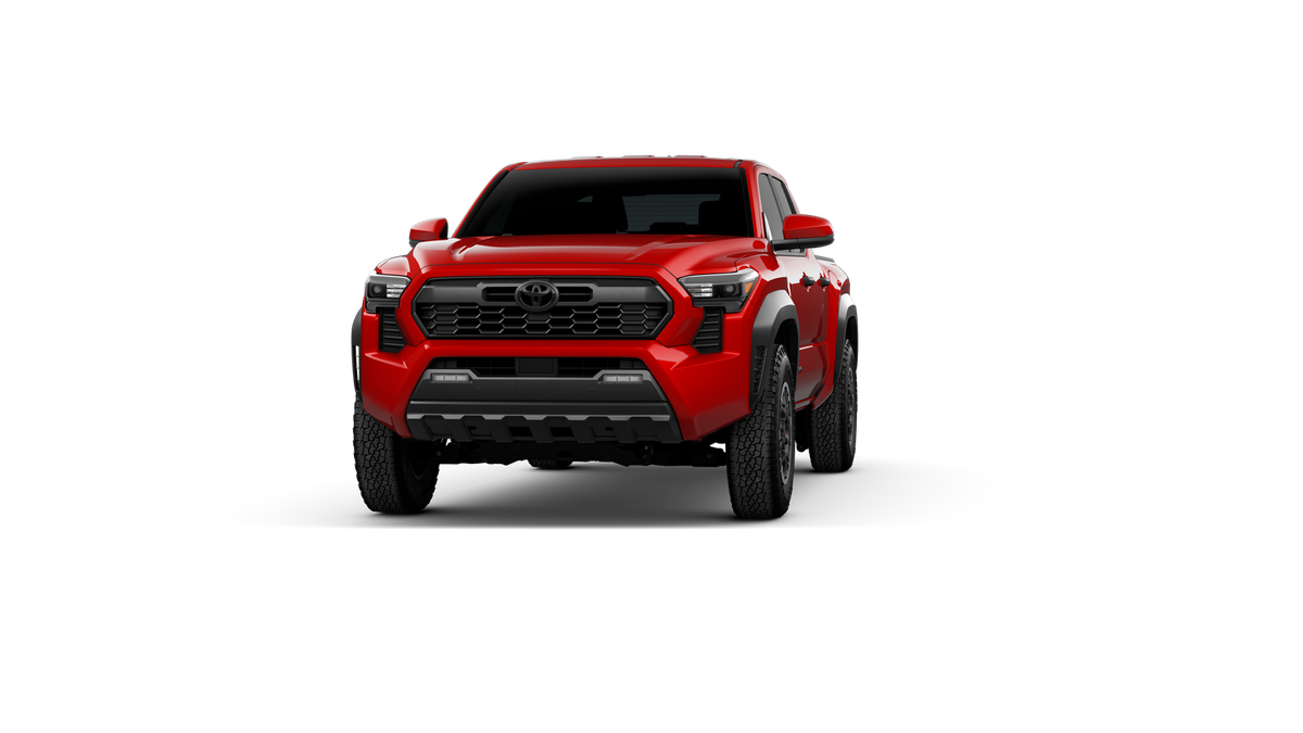 Red 2026 Toyota Tacoma TRD Off-Road 4WD 8-Speed Automatic 2.4L 4-Cylinder 18 Wheels, 3.583 Axle Ratio, 4-Wheel Disc Brakes, 6 Speakers, ABS brakes, Air Conditioning, Alloy wheels, AM/FM radio: SiriusXM, Anti-whiplash front head restraints, Apple CarPlay/Android Auto, Auto High-beam Headlights, Auto-dimming Rear-View mirror, Automatic temperature control, Brake assist, Bumpers: body-color, Driver door bin, Driver vanity mirror, Dual front impact airbags, Dual front side impact airbags, Electronic Stability Control, Emergency communication system: Safety Connect (up to 10-year trial subscription), Exterior Parking Camera Rear, Fabric Seat Trim, Four wheel independent suspension, Front anti-roll bar, Front Bucket Seats, Front Center Armrest, Front fog lights, Front reading lights, Fully automatic headlights, Heated door mirrors, Illuminated entry, JBL Premium Audio, Knee airbag, Leather Shift Knob, Leather steering wheel, Low tire pressure warning, Occupant sensing airbag, Outside temperature display, Overhead airbag, Overhead console, Panic alarm, Passenger door bin, Passenger vanity mirror, Power door mirrors, Power steering, Power windows, Radio: 8 Toyota Audio Multimedia, Rear step bumper, Rear window defroster, Remote keyless entry, Security system, SofTex Seat Trim, Speed control, Speed-sensing steering, Split folding rear seat, Steering wheel mounted audio controls, Tachometer, Telescoping steering wheel, Tilt steering wheel, Traction control, Trip computer, Turn signal indicator mirrors, and Variably intermittent wipers.
