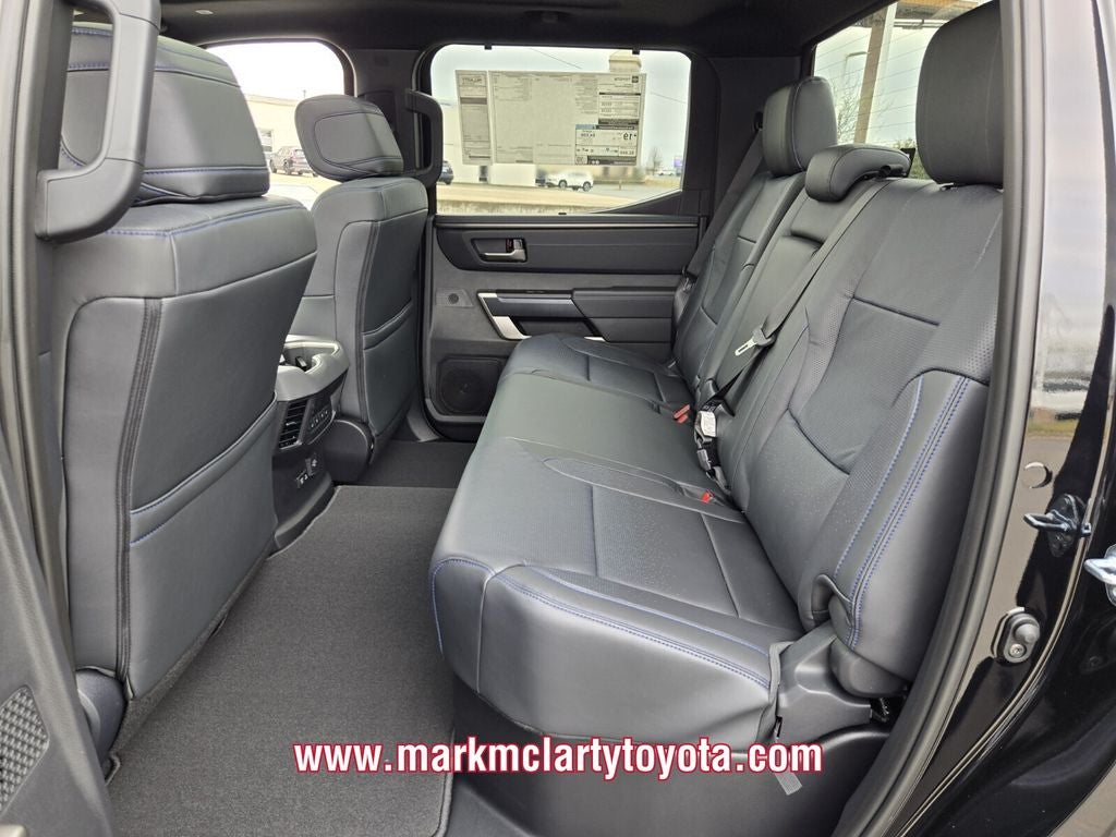 Midnight Black 2026 Toyota Tundra Platinum 4WD 10-Speed Automatic 3.4L V6 10-Way Power Adjustable Heated and Ventilated Front Seats, 12 Speakers, 3.31 Axle Ratio, 4-Wheel Disc Brakes, ABS brakes, Air Conditioning, Alloy wheels, AM/FM radio: SiriusXM, Apple CarPlay/Android Auto, Auto High-beam Headlights, Auto-dimming door mirrors, Auto-dimming Rear-View mirror, Automatic temperature control, Brake assist, Bumpers: body-color, Compass, Delay-off headlights, Driver door bin, Driver vanity mirror, Dual front impact airbags, Dual front side impact airbags, Electronic Stability Control, Emergency communication system: Safety Connect (up to 10-year trial subscription), Exterior Parking Camera Rear, Front anti-roll bar, Front Bucket Seats, Front Center Armrest, Front dual zone A/C, Front fog lights, Front reading lights, Front wheel independent suspension, Fully automatic headlights, Garage door transmitter: HomeLink, Heated door mirrors, Heated front seats, Heated rear seats, Heated steering wheel, Illuminated entry, Knee airbag, Leather Shift Knob, Leather steering wheel, Low tire pressure warning, Memory seat, Navigation system: Drive Connect Cloud Navigation (1-year trial subscription), Occupant sensing airbag, Outside temperature display, Overhead airbag, Overhead console, Panic alarm, Passenger door bin, Passenger vanity mirror, Power door mirrors, Power driver seat, Power moonroof, Power passenger seat, Power steering, Power windows, Premium Leather Seat Trim, Radio data system, Radio: Premium Audio, Rain sensing wipers, Rear reading lights, Rear seat center armrest, Rear step bumper, Rear window defroster, Remote keyless entry, Safety Connect, Security system, Speed control, Speed-sensing steering, Speed-Sensitive Wipers, Split folding rear seat, Steering wheel memory, Steering wheel mounted audio controls, Tachometer, Telescoping steering wheel, Tilt steering wheel, Traction control, Trip computer, Turn signal indicator mirrors, Variably intermittent wipers, Ventilated front seats, Ventilated rear seats, Voltmeter, and Wheels: 20 Dark Painted Alloy.