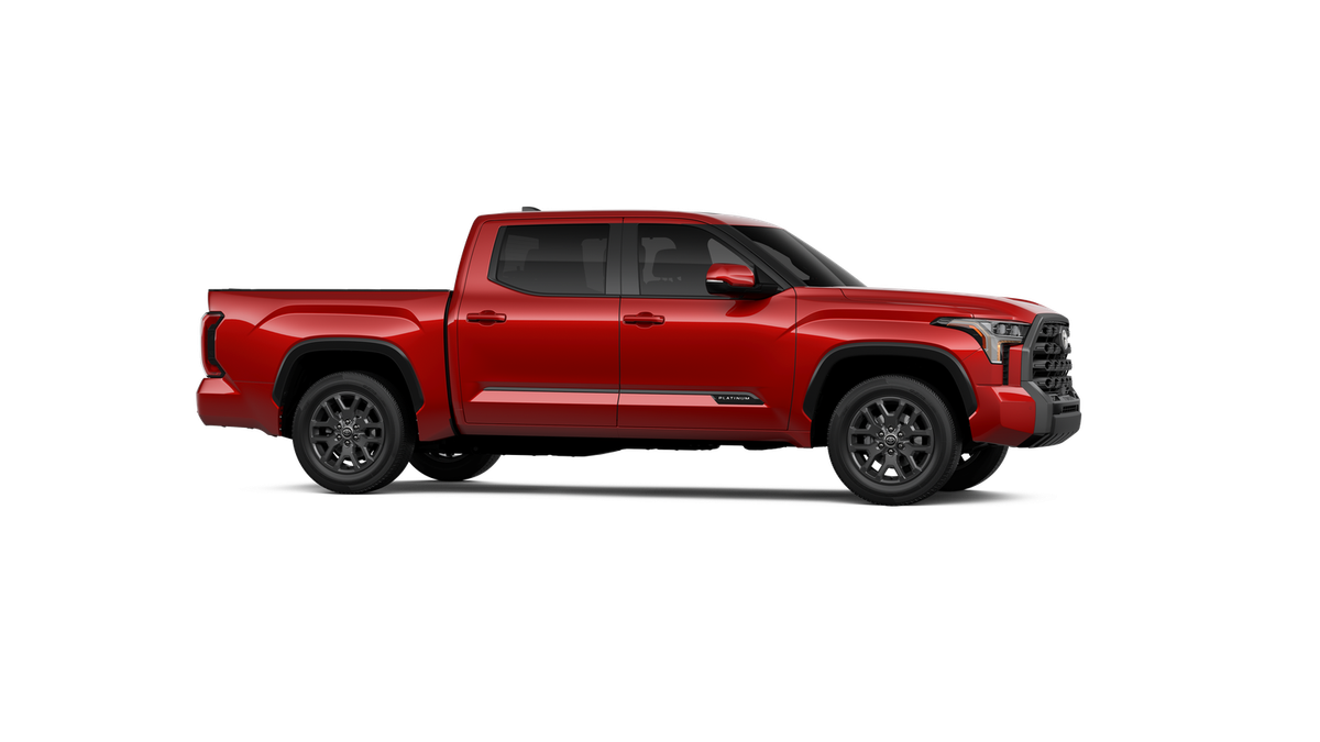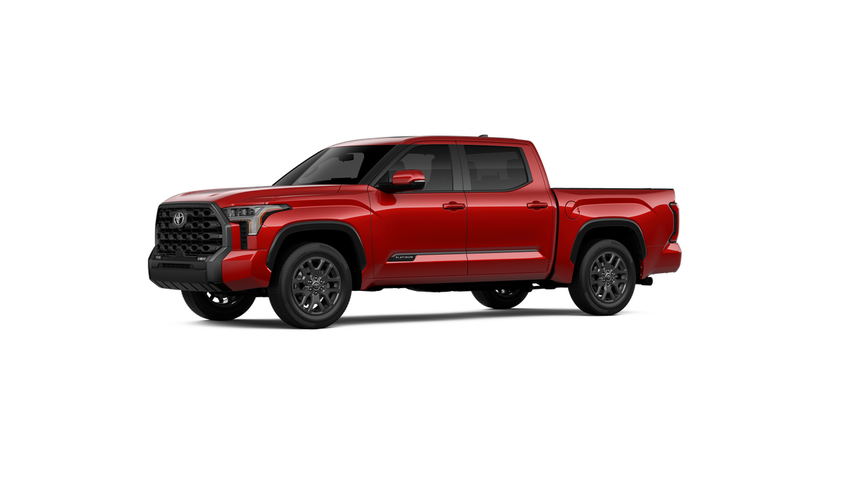 Red 2026 Toyota Tundra Platinum 4WD 10-Speed Automatic 3.4L V6 10-Way Power Adjustable Heated and Ventilated Front Seats, 12 Speakers, 3.31 Axle Ratio, 4-Wheel Disc Brakes, ABS brakes, Air Conditioning, Alloy wheels, AM/FM radio: SiriusXM, Apple CarPlay/Android Auto, Auto High-beam Headlights, Auto-dimming door mirrors, Auto-dimming Rear-View mirror, Automatic temperature control, Brake assist, Bumpers: body-color, Compass, Delay-off headlights, Driver door bin, Driver vanity mirror, Dual front impact airbags, Dual front side impact airbags, Electronic Stability Control, Emergency communication system: Safety Connect (up to 10-year trial subscription), Exterior Parking Camera Rear, Front anti-roll bar, Front Bucket Seats, Front Center Armrest, Front dual zone A/C, Front fog lights, Front reading lights, Front wheel independent suspension, Fully automatic headlights, Garage door transmitter: HomeLink, Heated door mirrors, Heated front seats, Heated rear seats, Heated steering wheel, Illuminated entry, Knee airbag, Leather Shift Knob, Leather steering wheel, Low tire pressure warning, Memory seat, Navigation system: Drive Connect Cloud Navigation (1-year trial subscription), Occupant sensing airbag, Outside temperature display, Overhead airbag, Overhead console, Panic alarm, Passenger door bin, Passenger vanity mirror, Power door mirrors, Power driver seat, Power moonroof, Power passenger seat, Power steering, Power windows, Premium Leather Seat Trim, Radio data system, Radio: Premium Audio, Rain sensing wipers, Rear reading lights, Rear seat center armrest, Rear step bumper, Rear window defroster, Remote keyless entry, Safety Connect, Security system, Speed control, Speed-sensing steering, Speed-Sensitive Wipers, Split folding rear seat, Steering wheel memory, Steering wheel mounted audio controls, Tachometer, Telescoping steering wheel, Tilt steering wheel, Traction control, Trip computer, Turn signal indicator mirrors, Variably intermittent wipers, Ventilated front seats, Ventilated rear seats, Voltmeter, and Wheels: 20 Dark Painted Alloy.