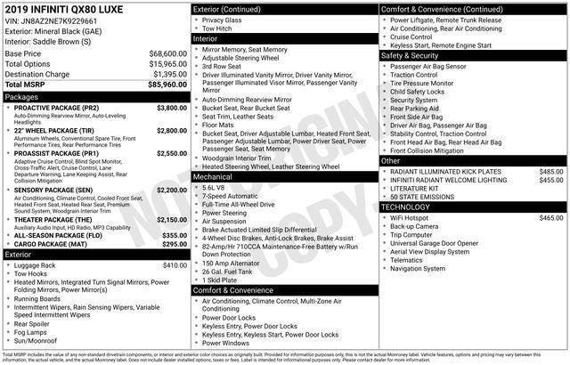 Mineral Black 2019 INFINITI QX80 LUXE 5.6L V8