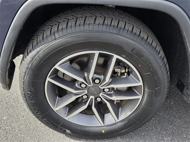 Grand Cherokee Limited, 4D Sport Utility, 3.6L V6 24V VVT, 8-Speed Automatic, RWD, Pacific Blue Clearcoat, Black Leather, 4-Wheel Disc Brakes, 6 Speakers, 7 & 4 Pin Wiring Harness, ABS brakes, Air Conditioning, Alloy wheels, AM/FM radio: SiriusXM, Anti-whiplash front head restraints, Apple CarPlay/Android Auto, Audio memory, Auto-dimming door mirrors, Auto-dimming Rear-View mirror, Automatic temperature control, Brake assist, Bumpers: body-color, Class IV Receiver Hitch, Compass, Delay-off headlights, Driver door bin, Driver vanity mirror, Dual front impact airbags, Dual front side impact airbags, Eco Suspension I, Electronic Stability Control, Emergency communication system: SiriusXM Guardian, Four wheel independent suspension, Front anti-roll bar, Front Bucket Seats, Front Center Armrest w/Storage, Front dual zone A/C, Front fog lights, Front License Plate Bracket, Front reading lights, Fully automatic headlights, Garage door transmitter, Heated door mirrors, Heated front seats, Heated steering wheel, Heavy-Duty Engine Cooling, Illuminated entry, Knee airbag, Leather Shift Knob, Leather Trimmed Bucket Seats, Low tire pressure warning, Memory seat, Navigation System, Normal Duty Suspension, Occupant sensing airbag, Outside temperature display, Overhead airbag, Overhead console, Panic alarm, ParkView Rear Back-Up Camera, Passenger door bin, Passenger vanity mirror, Power door mirrors, Power driver seat, Power Liftgate, Power moonroof, Power passenger seat, Power steering, Power windows, Quick Order Package 2BH, Radio data system, Rear anti-roll bar, Rear Load Leveling Suspension, Rear reading lights, Rear seat center armrest, Rear window defroster, Rear window wiper, Remote keyless entry, Security system, Speed control, Speed-sensing steering, Speed-Sensitive Wipers, Split folding rear seat, Spoiler, Steering wheel mounted audio controls, Tachometer, Telescoping steering wheel, Tilt steering wheel, Traction control, Trailer Tow Group IV, Trip computer, Turn signal indicator mirrors, Variably intermittent wipers, Wheels: 18 x 8.0 Tech Gray Diamond Cut.