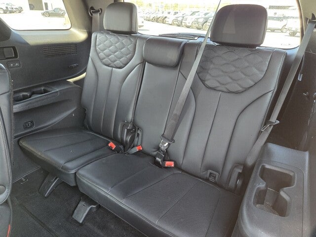 Palisade Calligraphy, 4D Sport Utility, V6, 8-Speed Automatic with SHIFTRONIC, AWD, Hyper White, Black Leather, 12 Speakers, 3rd row seats: split-bench, 4-Wheel Disc Brakes, ABS brakes, Air Conditioning, Alloy wheels, AM/FM radio: SiriusXM, Apple CarPlay & Android Auto, Auto High-beam Headlights, Auto-dimming Rear-View mirror, Auto-leveling suspension, Automatic temperature control, Brake assist, Bumpers: body-color, Cargo Cover/Screen, Cargo Tray, Carpeted Floor Mats, Compass, Delay-off headlights, Driver door bin, Driver vanity mirror, Dual front impact airbags, Dual front side impact airbags, Electronic Stability Control, Emergency communication system: Blue Link Connected Car Service (3-year complimentary subscription), Four wheel independent suspension, Front anti-roll bar, Front Bucket Seats, Front Center Armrest, Front dual zone A/C, Front reading lights, Fully automatic headlights, Garage door transmitter: HomeLink, harman/kardon® Speakers, Heads-Up Display, Heated & Ventilated Front Bucket Seats, Heated door mirrors, Heated front seats, Heated rear seats, Heated steering wheel, Illuminated entry, Knee airbag, Low tire pressure warning, Memory seat, Navigation System, Occupant sensing airbag, Option Group 01, Outside temperature display, Overhead airbag, Overhead console, Panic alarm, Passenger door bin, Passenger vanity mirror, Power door mirrors, Power driver seat, Power Liftgate, Power moonroof, Power passenger seat, Power steering, Power windows, Premium Nappa Leather Seat Trim, Radio data system, Radio: AM/FM/MP3 Premium Audio System, Rain sensing wipers, Rear air conditioning, Rear anti-roll bar, Rear reading lights, Rear window defroster, Rear window wiper, Reclining 3rd row seat, Remote keyless entry, Security system, Speed control, Speed-sensing steering, Split folding rear seat, Spoiler, Steering wheel mounted audio controls, Tachometer, Telescoping steering wheel, Tilt steering wheel, Traction control, Trip computer, Turn signal indicator mirrors, Variably intermittent wipers, Ventilated front seats, Ventilated rear seats, Wheel Locks, Wheels: 20 x 7.5J Calligraphy Exclusive Alloy.