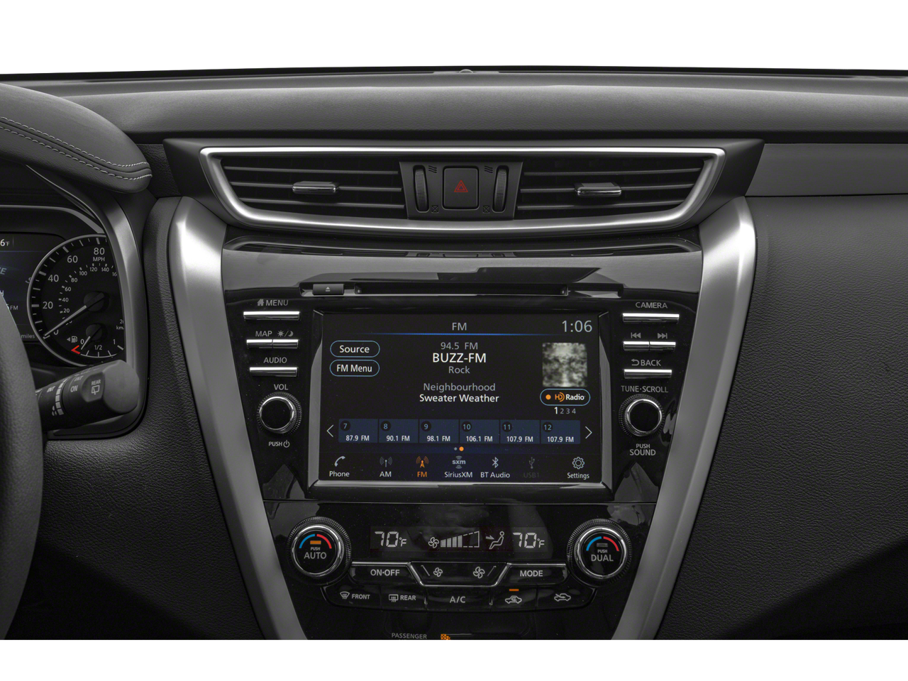 - Radio: AM/FM/CD/MP3/WMA Audio System -inc: Bose premium audio system w/11 speakers plus dual driver subwoofer, NissanConnect w/navigation featuring Apple CarPlay and Android Auto, Nissan door to door navigation w/3D building graphics and satellite imagery, connected navigation features including online POI search, door-to-door and online premium traffic information, SiriusXM Travel Link (weather, fuel prices, movie listings, stock info, sports and parking), SiriusXM Traffic, auxiliary audio input jack, SiriusXM satellite radio, A-IVI 8" display, 2 front illuminated USB connection ports (1 type-A, 1 type-C) for iPod interface and other compatible devices, Bluetooth® hands-free phone system, streaming audio via Bluetooth®, hands-free text-messaging assistant, Siri Eyes Free and 2 rear illuminated USB charge ports (1 type-A, 1 type-C)