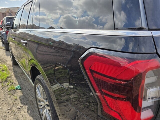 Expedition Max Limited, 4D Sport Utility, EcoBoost 3.5L V6 GTDi DOHC 24V Twin Turbocharged, 10-Speed Automatic, 4WD, Black Metallic, Sandstone Leather, 12 Speakers, 26mm Engine Radiator, 360-Degree Camera w/Split View, 360-Degree Camera w/Trailer Reverse Guidance, 3rd row seats: split-bench, 4-Wheel Disc Brakes, ABS brakes, Adjustable pedals, Advanced Cargo Manager, Air Conditioning, Alloy wheels, AM/FM radio: SiriusXM with 360L, Auto High-beam Headlights, Auto-dimming door mirrors, Auto-dimming Rear-View mirror, Automatic temperature control, Black Roof-Rail Crossbars, Brake assist, Bumpers: body-color, Compass, Connected Built-In Navigation, Delay-off headlights, Driver door bin, Driver vanity mirror, Dual front impact airbags, Dual front side impact airbags, Dual-Headrest Rear-Seat Entertainment System (DISC), Ebony Black Mesh Grille, Electronic Stability Control, Emergency communication system: SYNC 4 911 Assist, Equipment Group 302A High Package, Exterior Parking Camera Rear, Four wheel independent suspension, Front anti-roll bar, Front Bucket Seats, Front Center Armrest, Front dual zone A/C, Front fog lights, Front License Plate Bracket, Front reading lights, Fully automatic headlights, Garage door transmitter, Heated & Ventilated Leather Front Captain's Chairs, Heated door mirrors, Heated front seats, Heated rear seats, Heated steering wheel, Heavy-Duty Independent Suspension, Heavy-Duty Trailer Tow Package, Illuminated entry, Integrated Trailer Brake Controller, Leather steering wheel, Low tire pressure warning, Magnetic-Painted Power Deployable Running Boards, Memory seat, Navigation system: Connected Navigation, Occupant sensing airbag, Outside temperature display, Overhead airbag, Overhead console, Panic alarm, Passenger door bin, Passenger vanity mirror, Pedal memory, Power door mirrors, Power driver seat, Power Liftgate, Power moonroof, Power passenger seat, Power steering, Power windows, Power-Folding Sideview Mirrors w/Autofold, Pro Trailer Backup Assist, Radio data system, Radio: B&O Sound System by Bang & Olufsen, Rain sensing wipers, Rear air conditioning, Rear anti-roll bar, Rear reading lights, Rear window defroster, Rear window wiper, Reclining 3rd row seat, Remote keyless entry, Reverse Brake Assist, Second Row Power Windows Removal, Security system, SiriusXM w/360L, Speed control, Speed-sensing steering, Speed-Sensitive Wipers, Split folding rear seat, Spoiler, Steering wheel memory, Steering wheel mounted audio controls, SYNC 4 w/Enhanced Voice Recognition, Tachometer, Telescoping steering wheel, Tilt steering wheel, Traction control, Trip computer, Turn signal indicator mirrors, Variably intermittent wipers, Ventilated front seats, Voltmeter, Wheels: 20 Bright Machined Aluminum, Wheels: 22 12-Spoke Polished Aluminum.