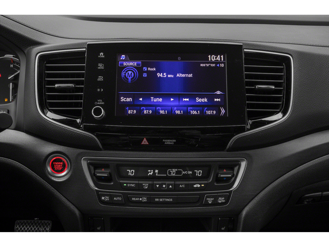 - Radio: 215-Watt Audio System w/7 Speakers -inc: subwoofer, Bluetooth® streaming audio, MP3/auxiliary input jack, Radio Data System (RDS), Speed-Sensitive Volume Compensation (SVC), 8" display audio w/high-resolution electrostatic touch screen and customizable feature settings, Apple CarPlay compatibility, Android Auto compatibility, HondaLink, SMS text message function (Compatible w/select phones w/Bluetooth®, Your wireless carrier's rate plans apply, State or local laws may limit use of texting feature, Only use texting feature when conditions allow you to do so safely.) and 1.5-amp USB smartphone/audio interface in front console (1 port)