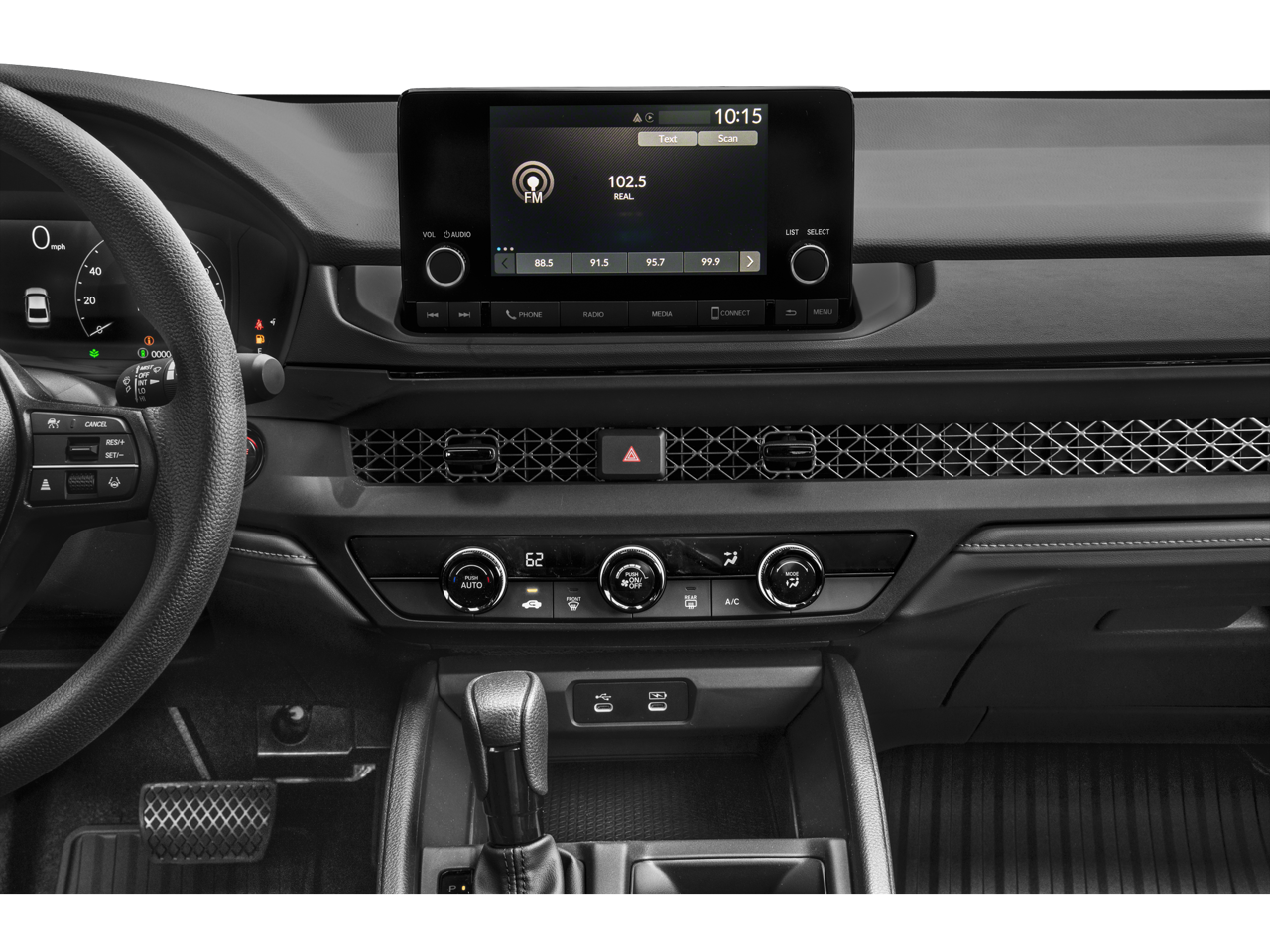 • Radio: 160-Watt AM/FM Audio System -inc: 4 speakers, 7" color touchscreen, wired Apple CarPlay and Android Auto compatibility, Bluetooth® streaming audio, 1 USB-C 3.0A smartphone/audio interface, 1 USB-C 3.0A charging port, wi-fi hotspot capability and HondaLink subscription services