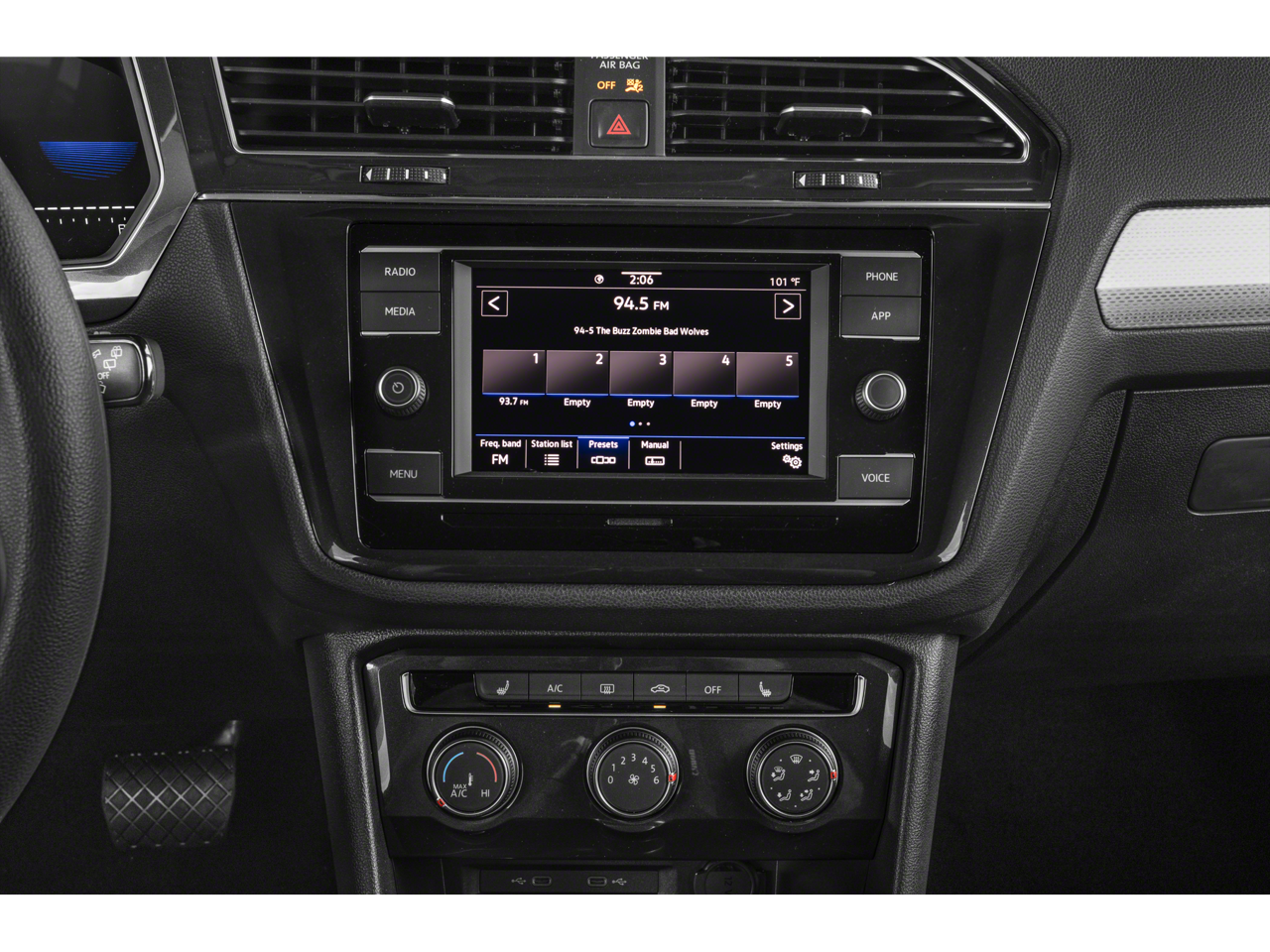 - Radio: MIB3 Composition Media AM/FM/HD -inc: 8" touchscreen, WMA/MP3/FLAC player w/USB-C, 6-speaker sound system, capability for in-vehicle 4G LTE enabled Wi-Fi (cellular data plan required; includes limited trial), capability for VW Car-Net services (capabilities for certain services vary; requires enrollment or subscription), Bluetooth® connectivity (for compatible devices), SiriusXM w/360L (w/3-month free trial subscription; 360L services require acceptance of Car-Net terms), App-Connect smartphone integration (w/Apple CarPlay, Android Auto and MirrorLink) via USB, Wireless App-Connect smartphone integration (for compatible devices) w/multi-phone pairing capability and 45W fast charging (for compatible mobile phones and accessories) via USB in first and second rows