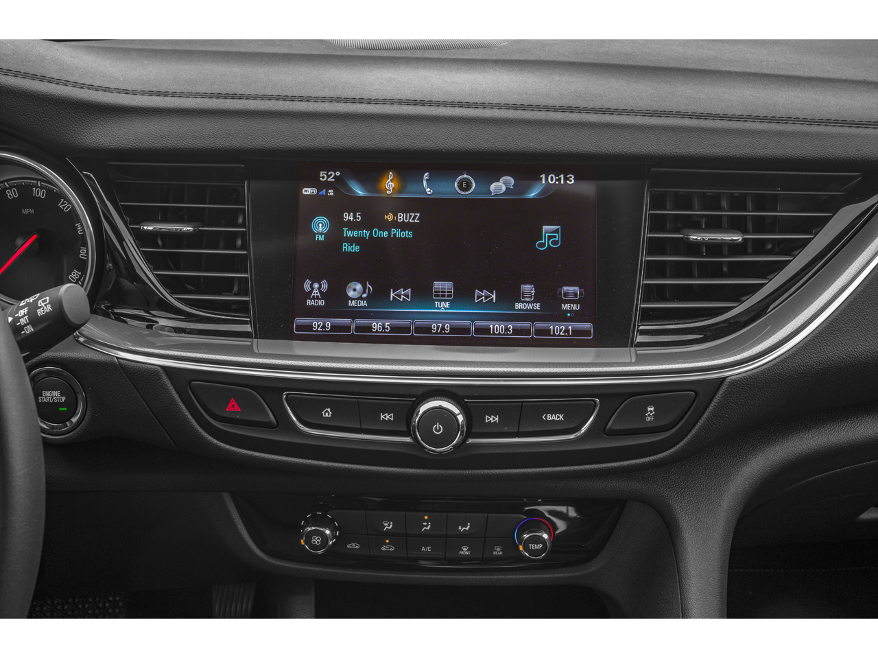 - Audio system, 8" diagonal Buick Infotainment System includes multi-touch display, AM/FM/SiriusXM stereo, Bluetooth® streaming audio for music and most phones, Android Auto and Apple CarPlay capability for compatible phones, advanced voice recognition, in-vehicle apps, personalized profiles for infotainment and vehicle settings