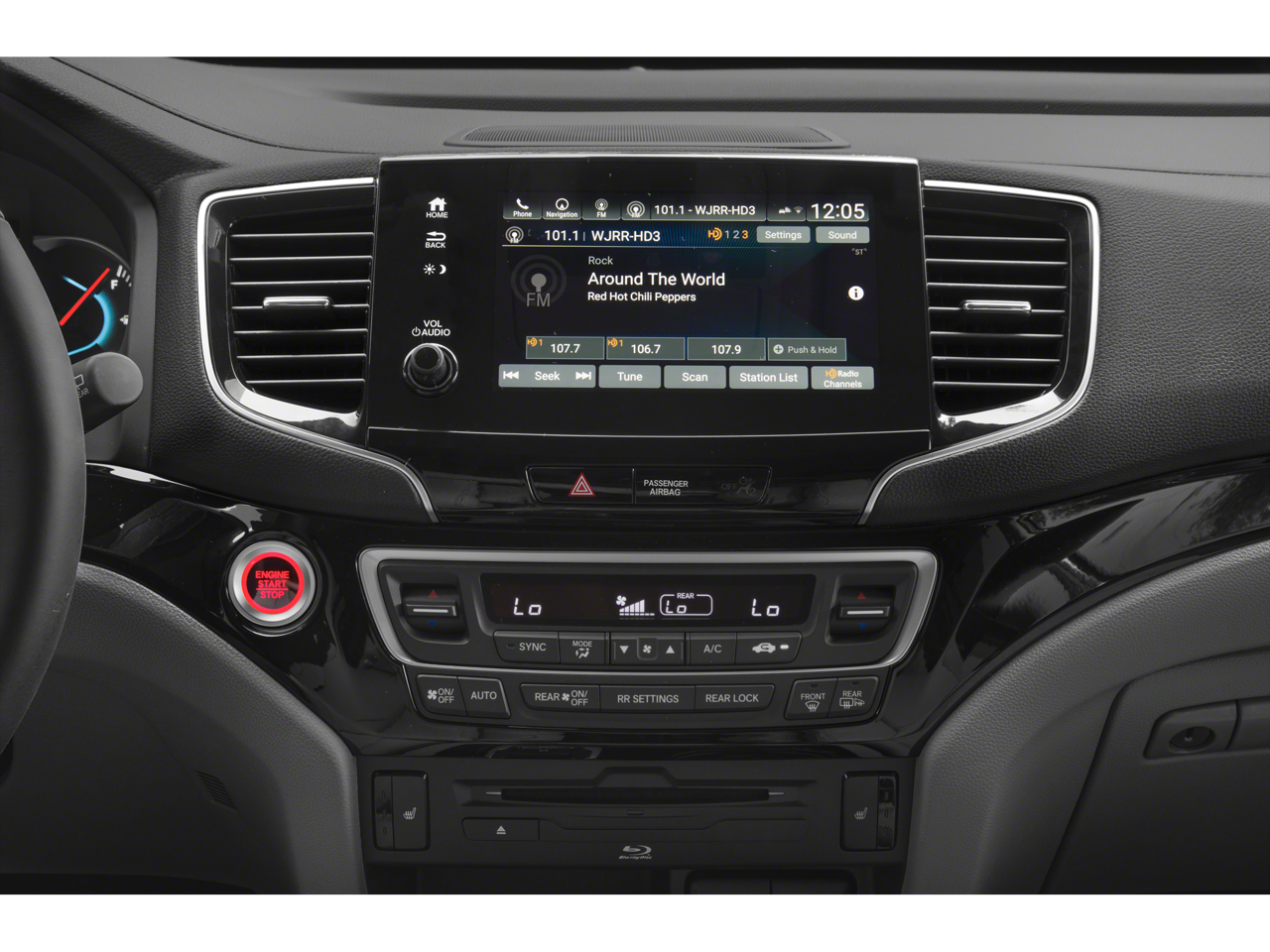 - Radio: 590-Watt Premium Audio System -inc: 10 speakers, subwoofer, 8" display audio w/high-resolution electrostatic touch-screen and customizable feature settings, 2.5-amp USB smartphone/audio interface front console (1 port), Bluetooth® HandsFreeLink, Bluetooth® streaming audio, MP3/auxiliary input jack, Radio Data System (RDS), Speed-Sensitive Volume Compensation (SVC), 2.5-amp USB charging port in center console (1 port) and 2nd row (2 ports), HondaLink, CabinControl remote compatibility, Apple CarPlay integration, Android Auto integration, SMS text message function (Compatible w/select phones w/Bluetooth®, Your wireless carrier's rate plans apply, State or local laws may limit use of texting feature, Only use texting feature when conditions allow you to do so safely.), SiriusXM radio (SiriusXM services require a subscription after any trial period, If you decide to continue your SiriusXM service at the end of your trial subscription, the plan you choose will automatically renew and bill at then-current rates until you call SiriusXM at 1-866-635-2349 to cancel, See our customer agreement for complete terms at www.siriusxm.com, Fees and programming subject to change, Available in the 48 contiguous United States and D.C, SiriusXM and all related marks and logos are trademarks of SiriusXM Radio Inc, HD Radio, CabinTalk in-car PA system through headphones, HondaLink subscription services (HondaLink subscription services come w/complimentary trials of security for 1 year and a remote/concierge trial for 3 months, Enrollment is required to access the remote/concierge trial and to access certain features of security, At the end of each trial period, purchase of a subscription is required to continue the respective services.), Wi-Fi hotspot capability (Requires AT&T data plan.) and multi-zone audio