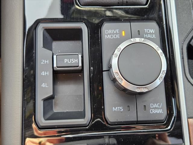 TRD Off-Road Package - Includes 20-in. TRD alloy wheels with all-terrain tires, TRD grille, "TRD OFF-ROAD" bed-side decal, off-road suspension with Bilstein shocks, skid plates, mud guards, red TRD engine start button, TRD leather-wrapped shift knob, aluminum sport pedals, electronically controlled locking rear differential, Multi-Terrain Select (MTS), Crawl Control (CRAWL), and Downhill Assist Control (DAC)